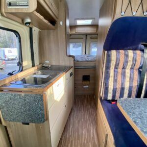Trip computer, ABS brakes, Airbag, Cab air conditioning, Fridge, Cassette WC, Cassette blinds, Roof hatch, Central locking, Central heating, Ignition interlock, Stove, Hot water boiler, Power steering, Double bed, Stereo system, Electric windows, Power side mirrors, Electric steps, Trumatic, Turbo, Cruise control, Airbags