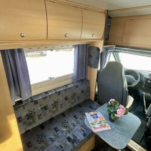 Fridge, Ilmastointi: Manuaalinen, Cab air conditioning, Airbag, Cassette WC, Cassette blinds, Roof hatch, Central heating, Ignition interlock, Passenger area carpets, Stove, Traction control, Hot water boiler, Double bed, Freezer compartment, Power steering, Sun shade, Turbo, Trumatic, TV-antenni tai lautasantenni, Floor heating, Shower, Radio, Electric windows, Sink, Electric steps, CD-soitin, Power side mirrors
