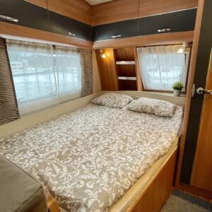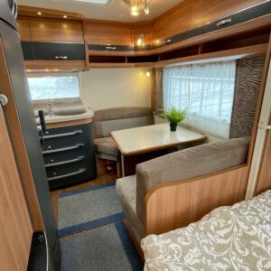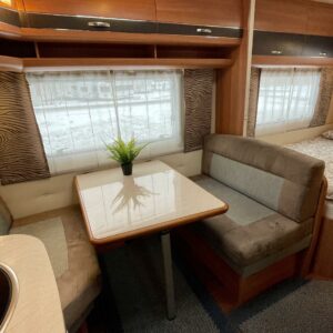 Support legs, Trumatic- ilmapuhalluslämmitys, Sink, Stove, Roof hatch, Fridge, Cassette WC, Cassette blinds, Freezer compartment, Double bed, Rear kitchen, Hot water boiler, Kesärenkaat, televisioteline, Solar panel