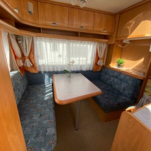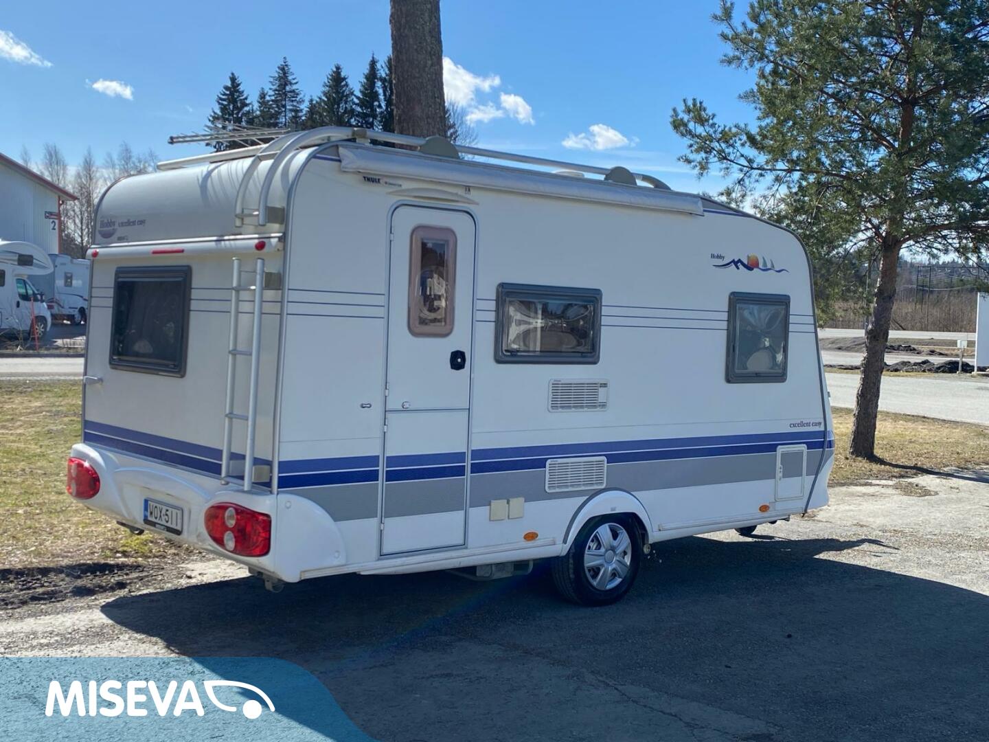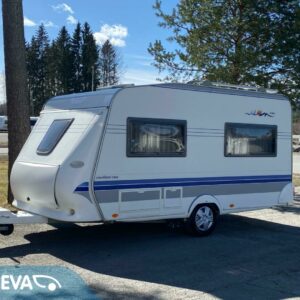 Fridge, Cassette WC, Cassette blinds, Roof hatch, Roof railing/ladder, Passenger area carpets, Stove, Hot water boiler, Sun shade, Freezer compartment, Sink, Shower, Trumatic, Support legs, Kesärenkaat, kwh-mittari, Asuinosan hyttysovi/verho