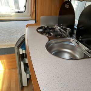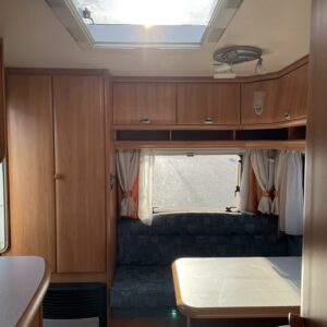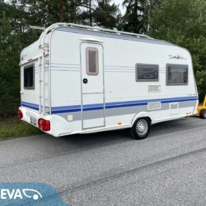 Fridge, Cassette WC, Cassette blinds, Roof railing/ladder, Roof hatch, Stove, Freezer compartment, Double bed, Trumatic, Support legs, TV-antenni tai lautasantenni, Electric heating cartridge, Sink, Passenger area carpets