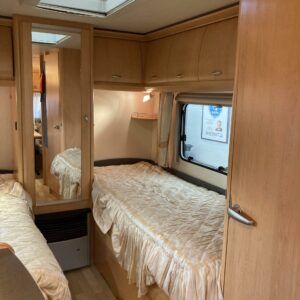 Truma, Separate beds, Fridge, Cassette WC, Cassette blinds, Roof railing/ladder, Roof hatch, Floor heating, Stove, Hot water boiler, Freezer compartment, Sink, Electric heating cartridge, TV-antenni tai lautasantenni, Support legs, Lattialämmitys (sähkö), sähkön ulosotto, televisio