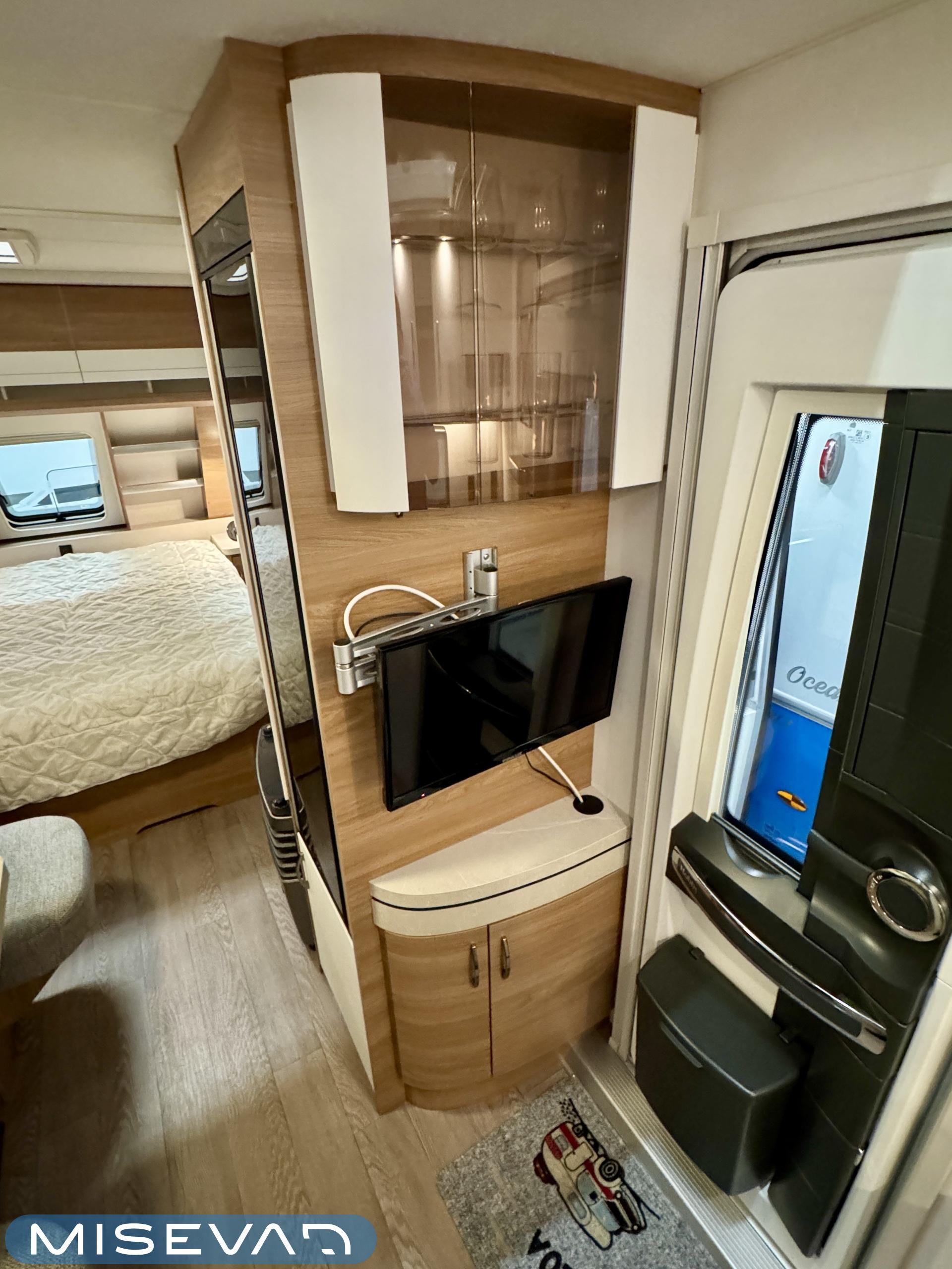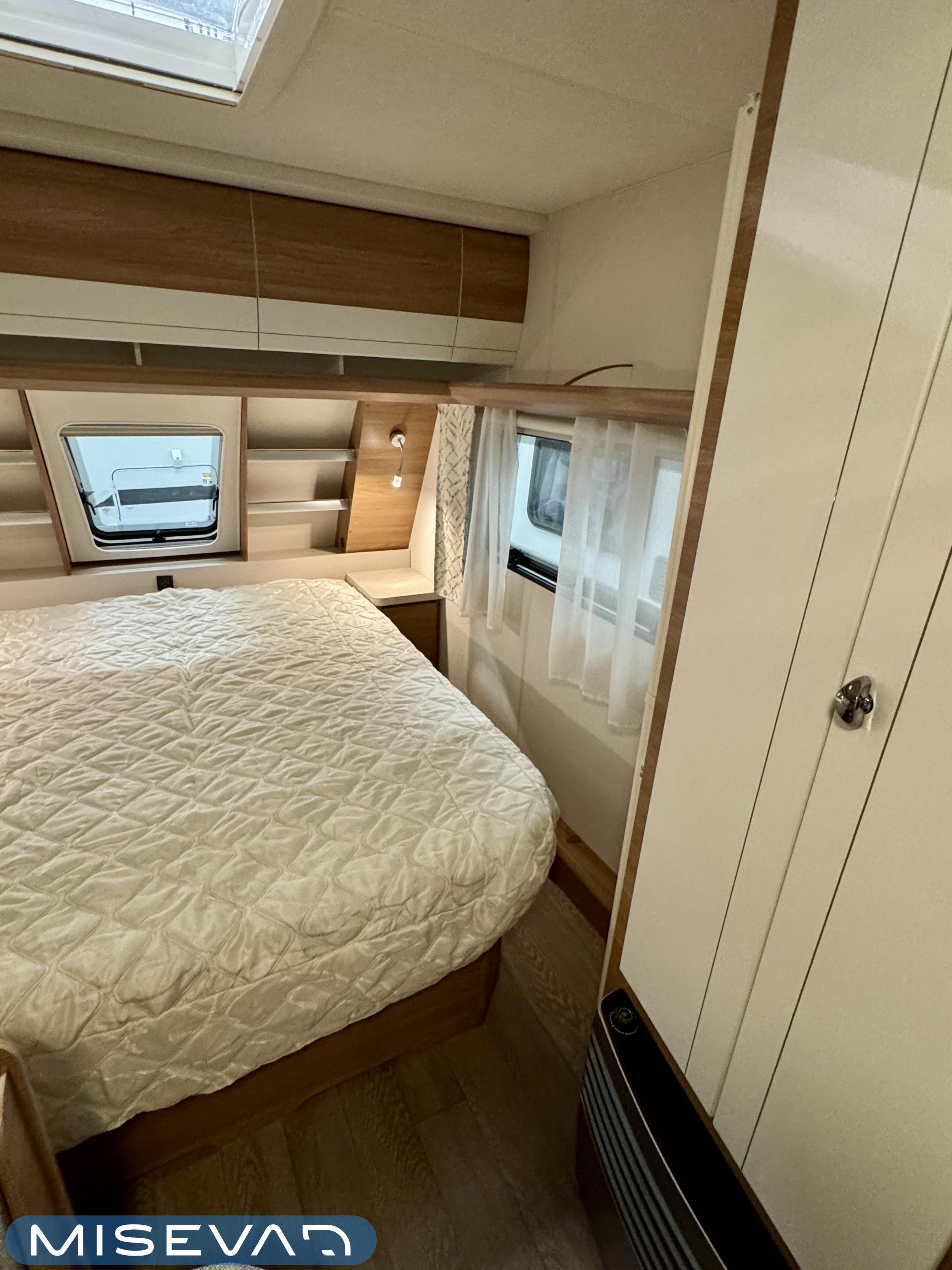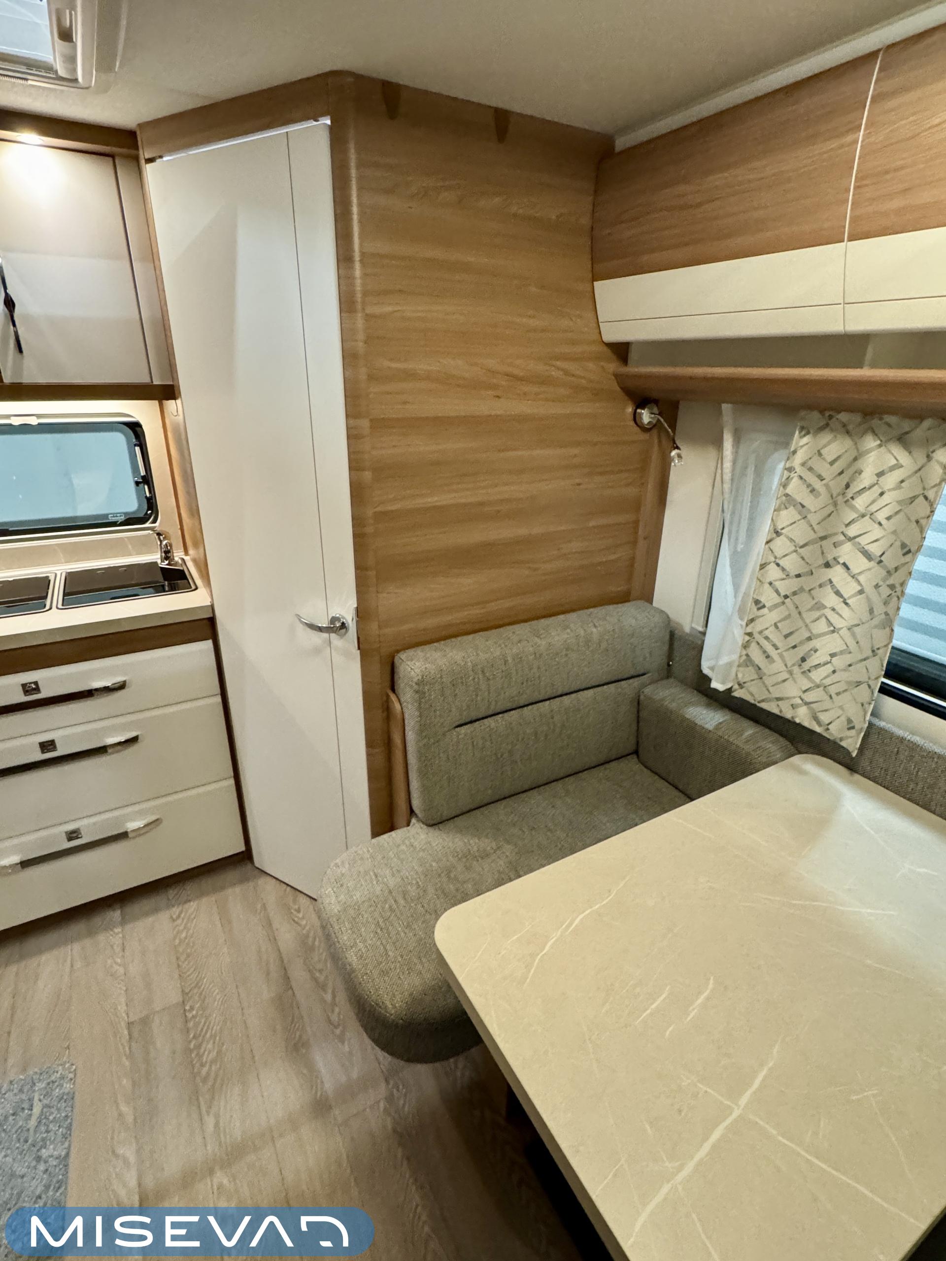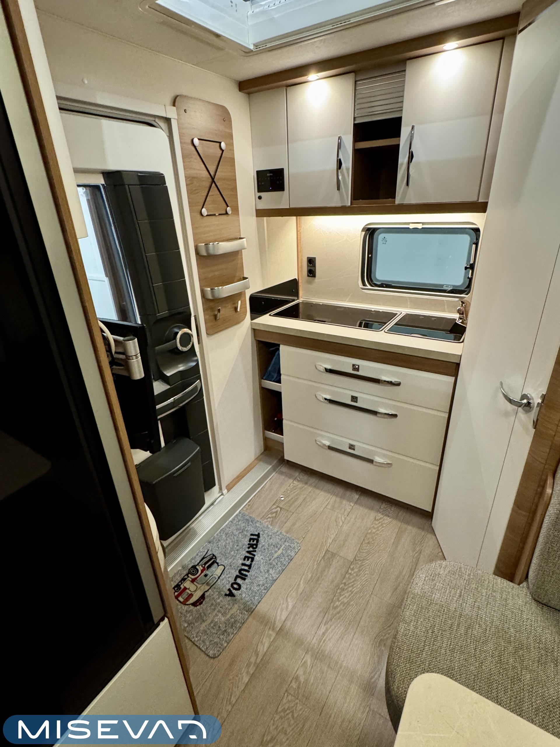 Solar panel, Fridge, Cassette WC, Cassette blinds, Roof hatch, Floor heating, Stove, Sink, Double bed, Freezer compartment, Sun shade, Hot water boiler, TV-antenni tai lautasantenni, Trumatic, Support legs