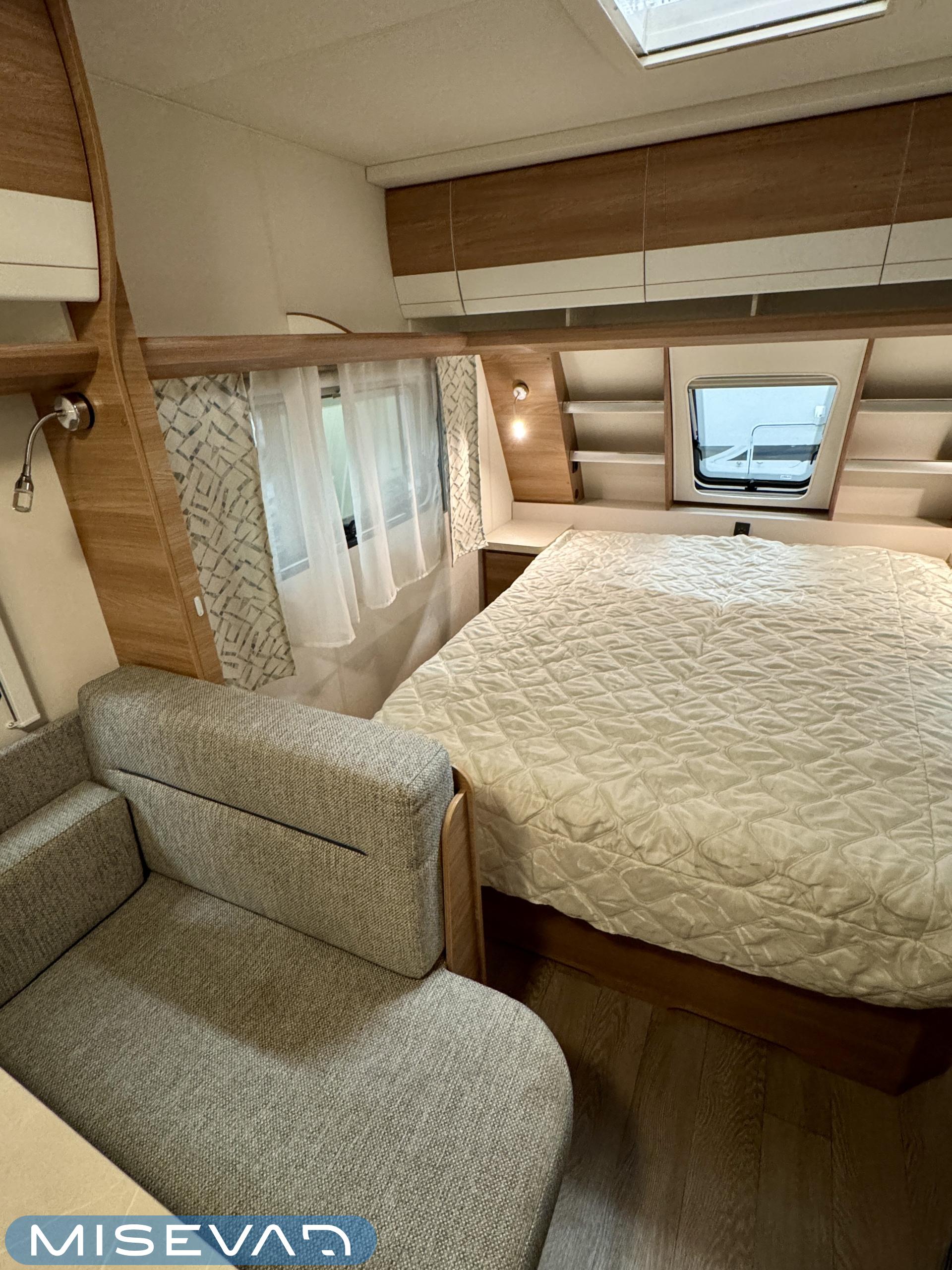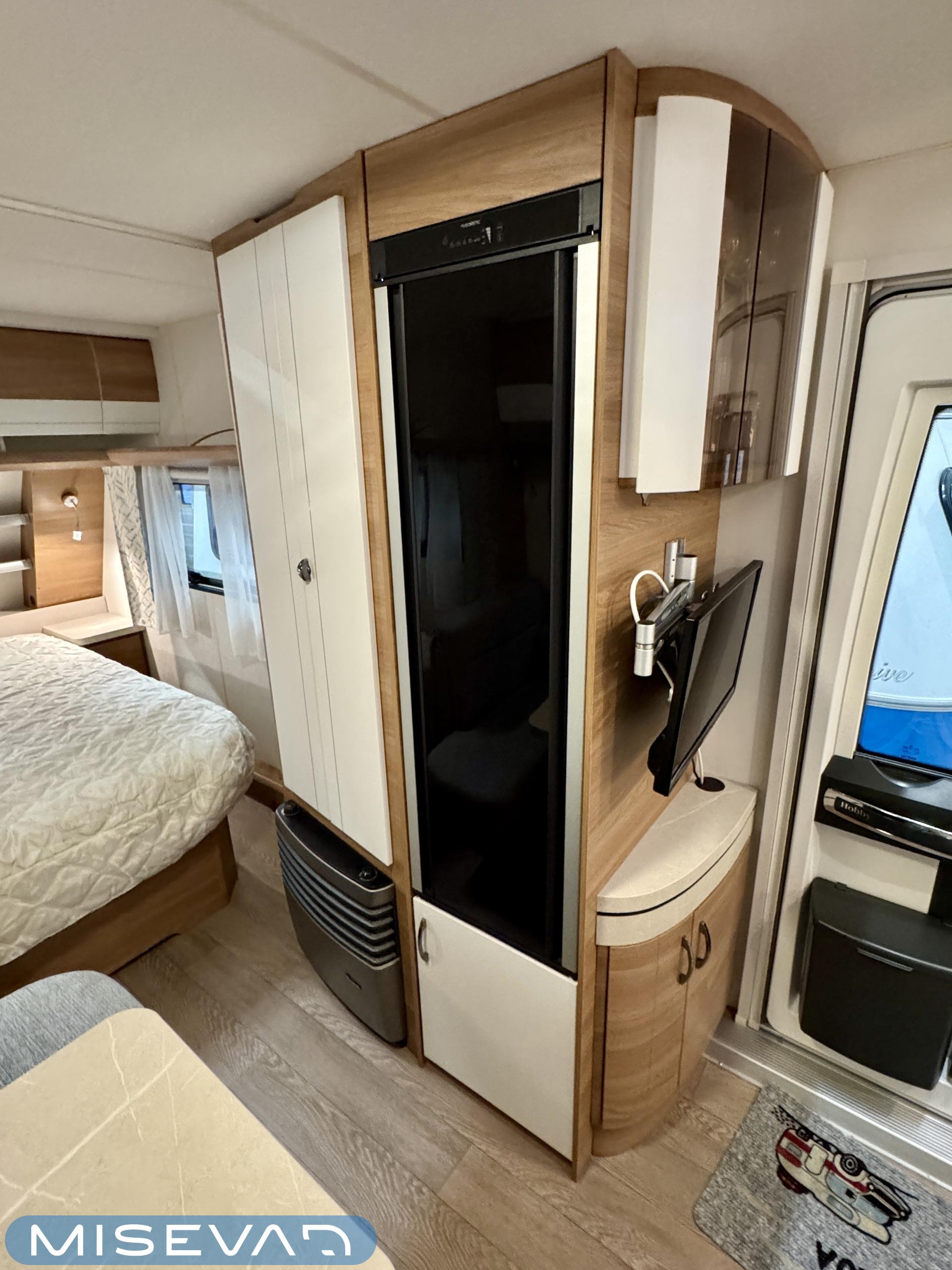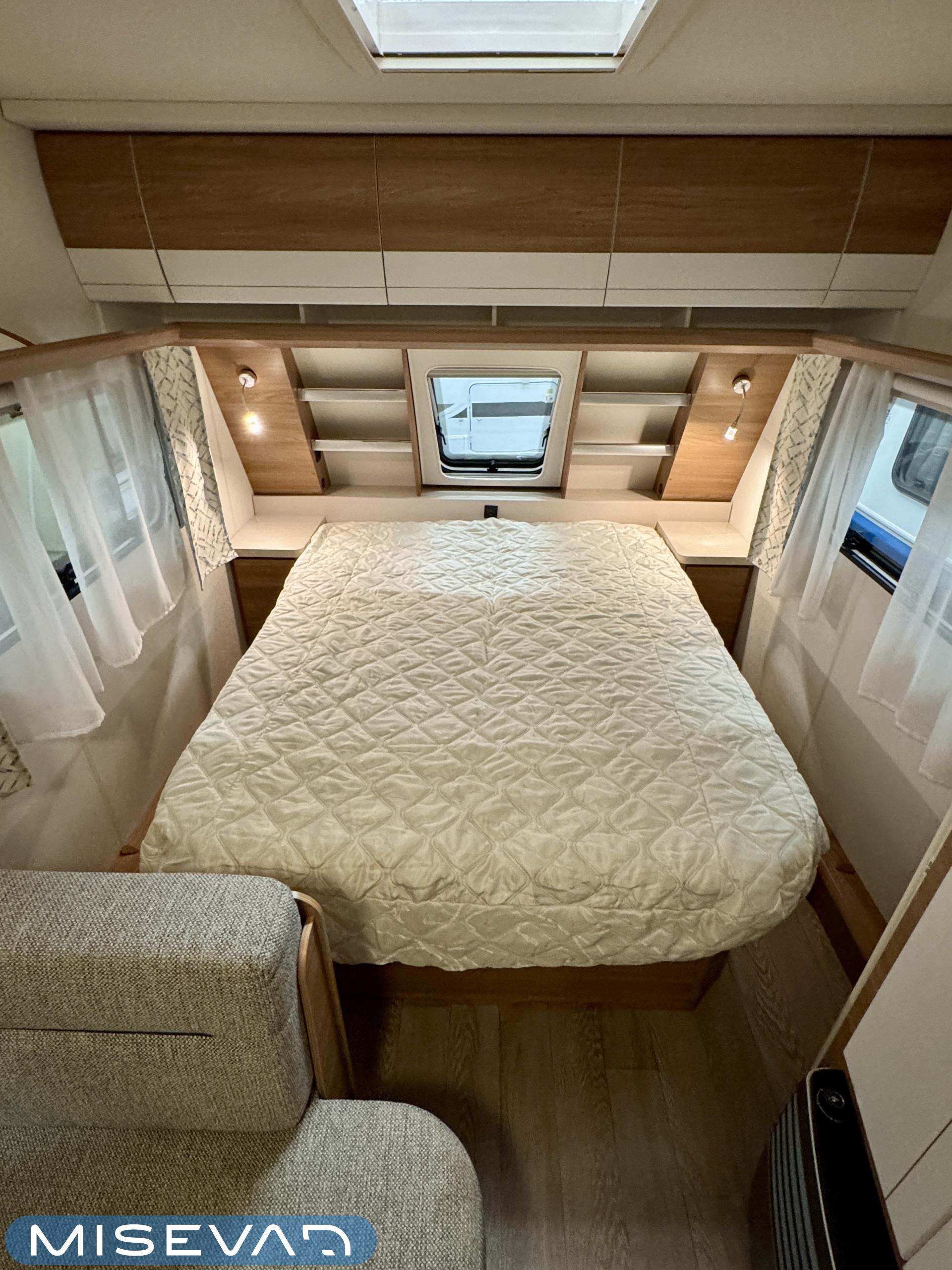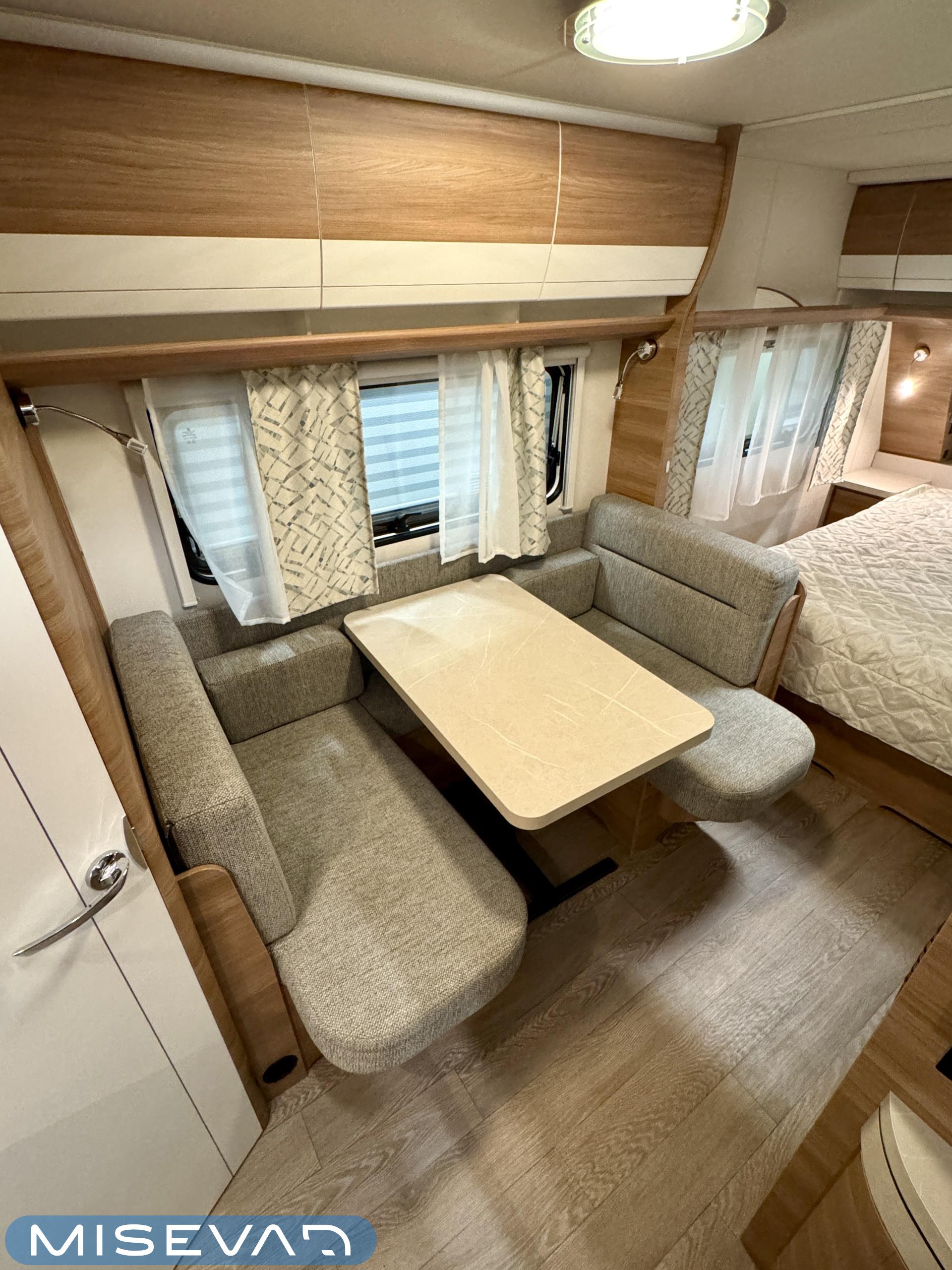 Solar panel, Fridge, Cassette WC, Cassette blinds, Roof hatch, Floor heating, Stove, Sink, Double bed, Freezer compartment, Sun shade, Hot water boiler, TV-antenni tai lautasantenni, Trumatic, Support legs