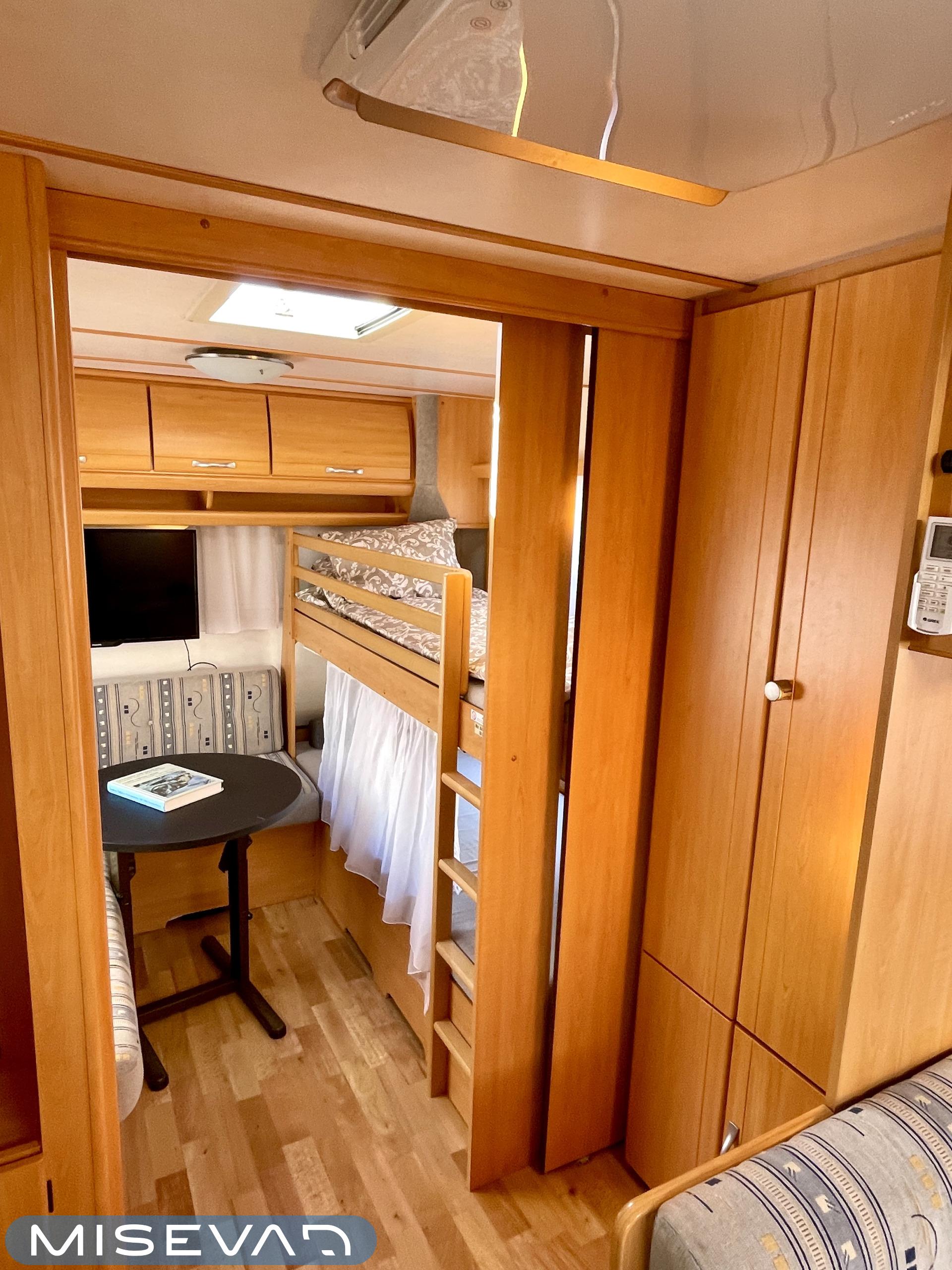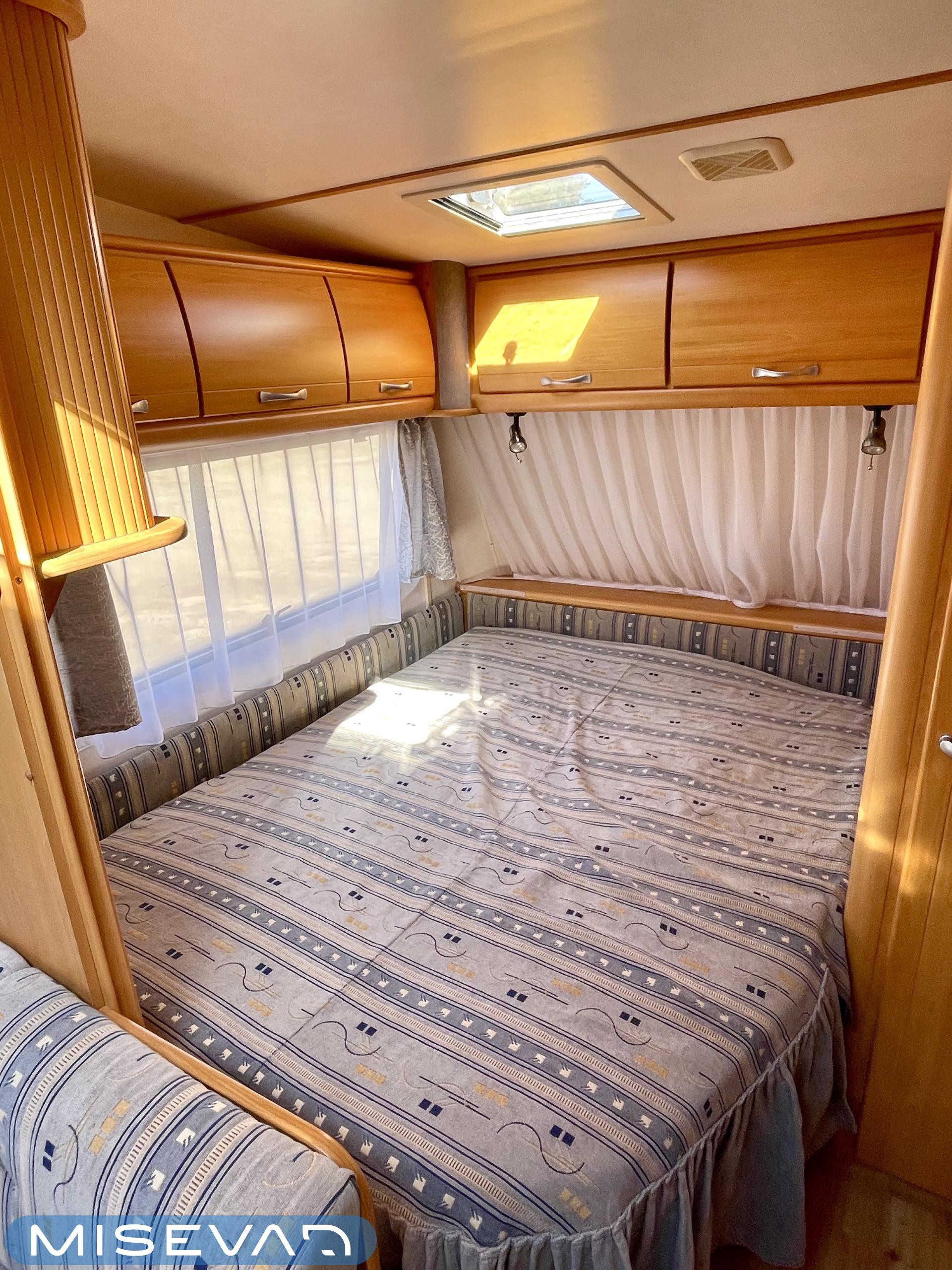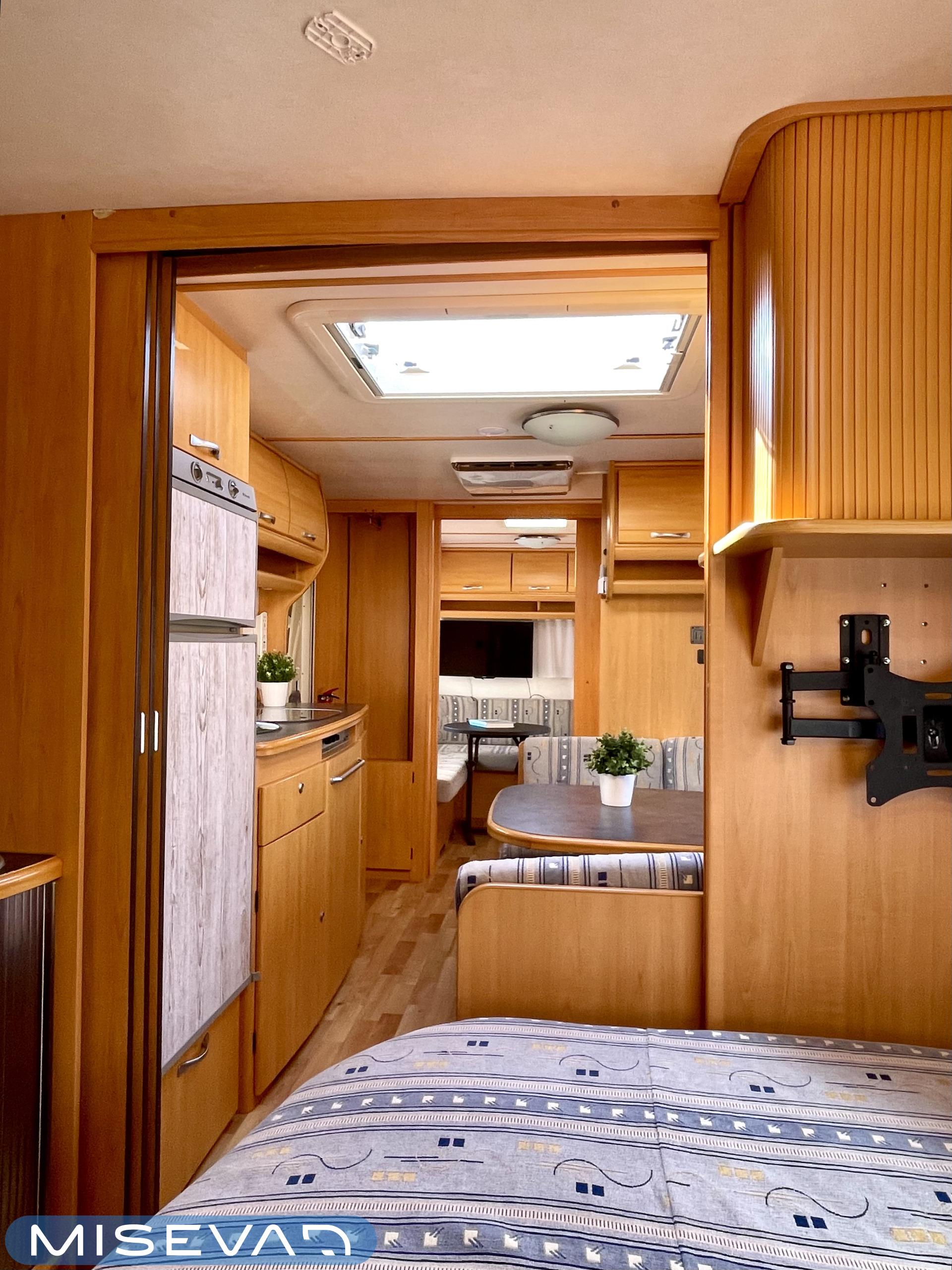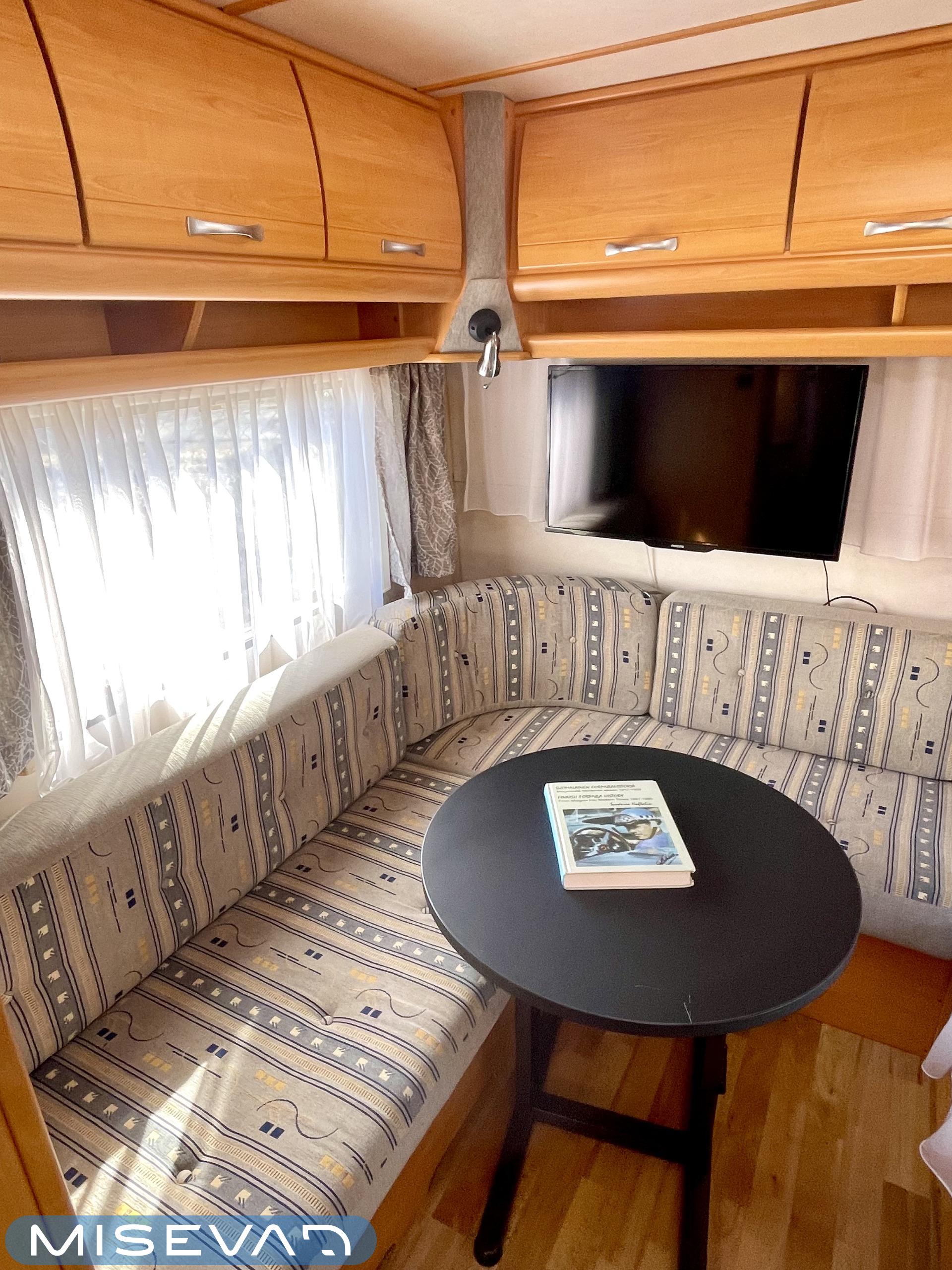 Trumatic- ilmapuhalluslämmitys, Electric heating cartridge, Sink, Sun shade, Hot water boiler, Stove, Cassette blinds, Kasetti- WC, Fridge, Cassette WC, Roof hatch, Floor heating, Freezer compartment, Double bed, Bicycle rack, Shower, TV-antenni tai lautasantenni, Trumatic, Truma, Lattialämmitys (sähkö), Kesärenkaat, Polkupyöräteline, liesituuletin, Asuinosan hyttysovi/verho, Pussimarkiisi