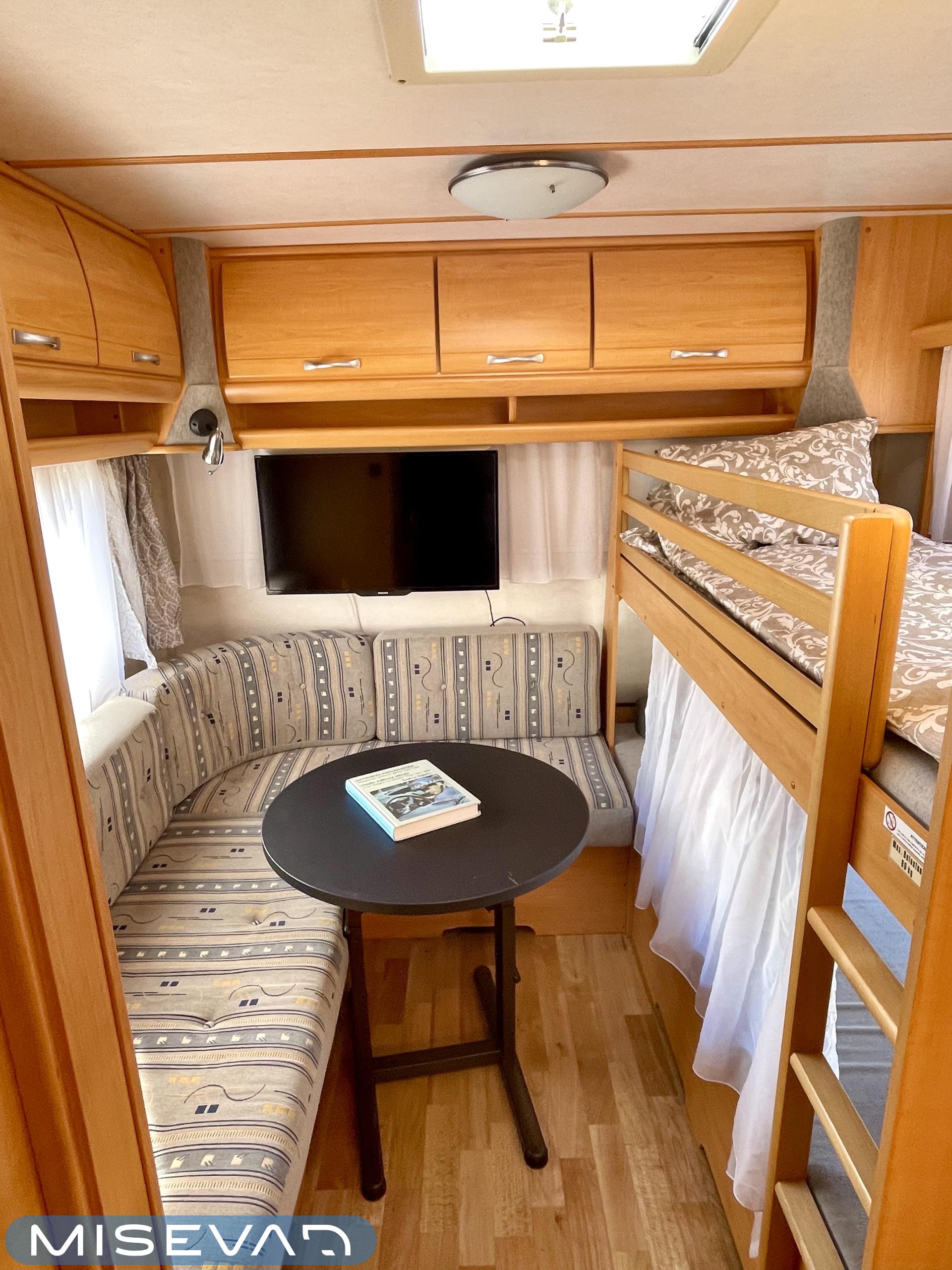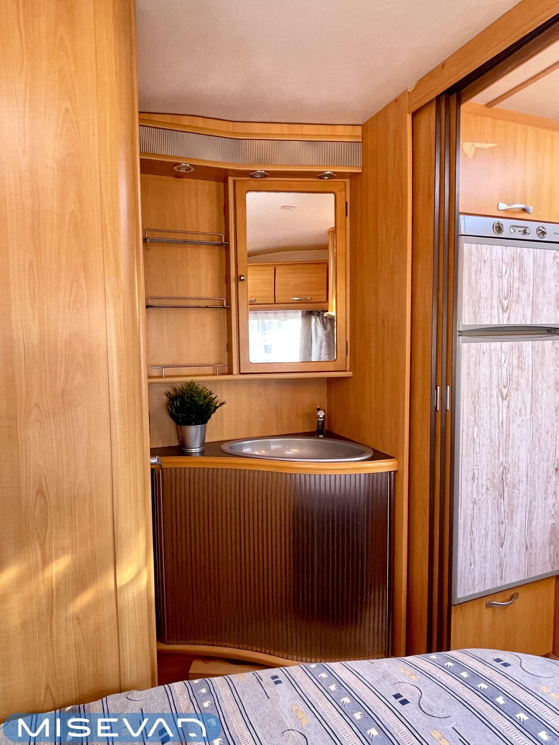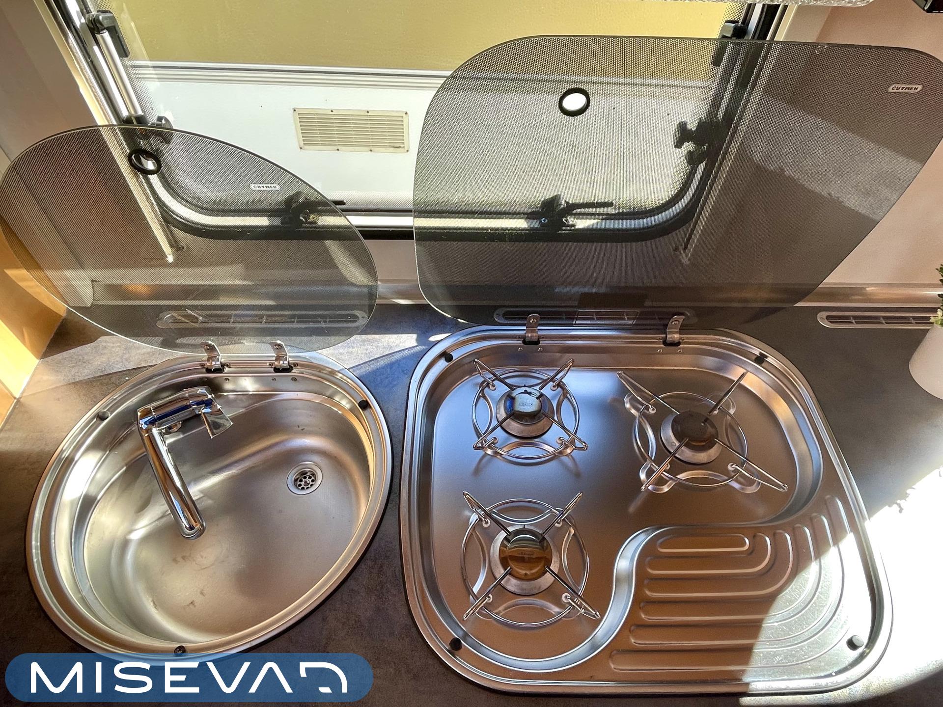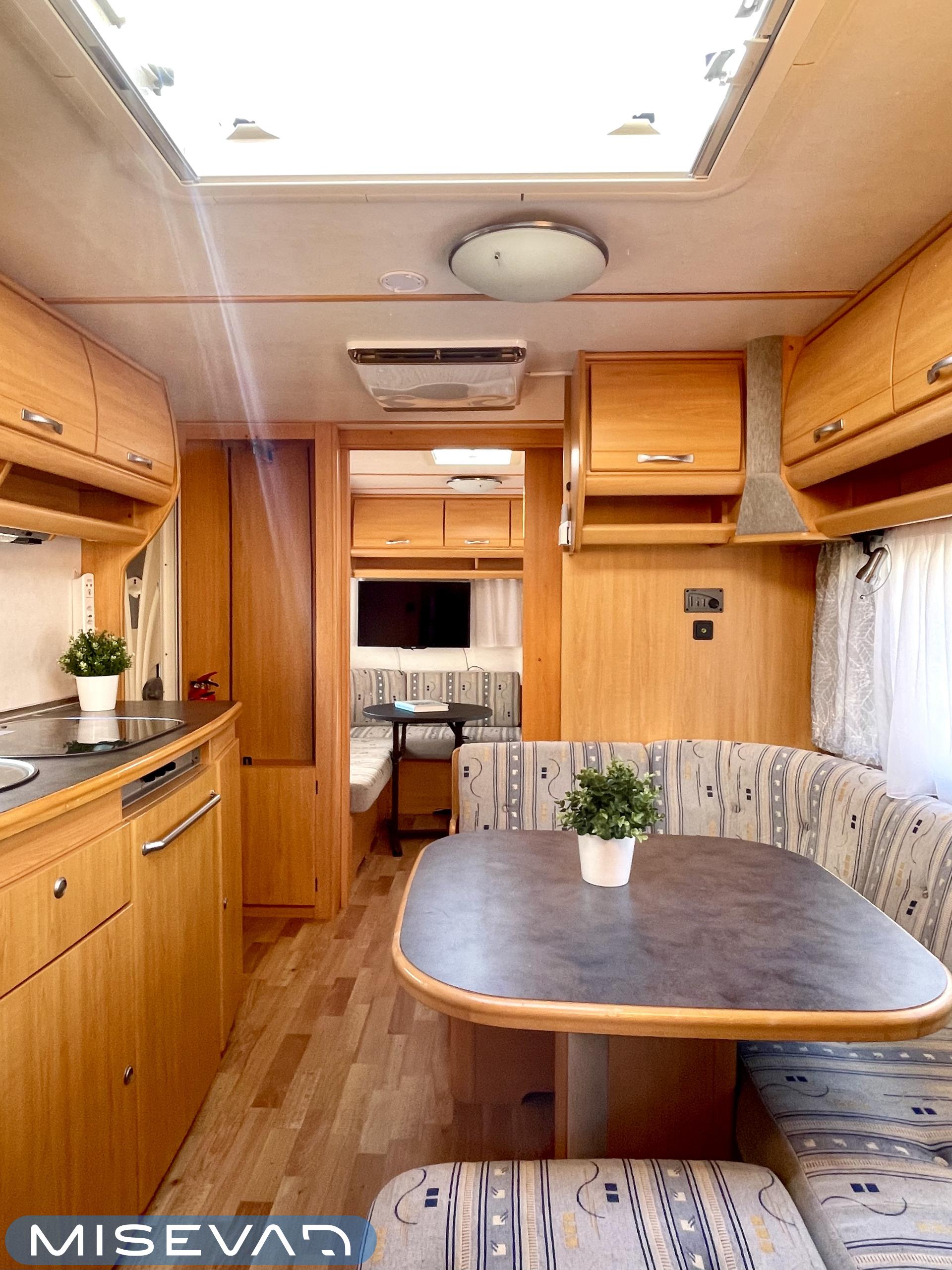 Trumatic- ilmapuhalluslämmitys, Electric heating cartridge, Sink, Sun shade, Hot water boiler, Stove, Cassette blinds, Kasetti- WC, Fridge, Cassette WC, Roof hatch, Floor heating, Freezer compartment, Double bed, Bicycle rack, Shower, TV-antenni tai lautasantenni, Trumatic, Truma, Lattialämmitys (sähkö), Kesärenkaat, Polkupyöräteline, liesituuletin, Asuinosan hyttysovi/verho, Pussimarkiisi
