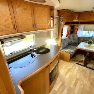 Alde, CD-soitin, Separate beds, Fridge, Cassette WC, Cassette blinds, Roof hatch, Floor heating, Stove, Hot water boiler, Fluid circulation heating, Freezer compartment, Sink, Bicycle rack, Electric heating cartridge, TV-antenni tai lautasantenni, Support legs, Lattialämmitys (sähkö), kwh-mittari, liesituuletin, sähkön ulosotto, Asuinosan hyttysovi/verho, Gas oven