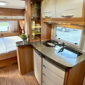 Alde, Fridge, Cassette WC, Cassette blinds, Roof hatch, Floor heating, Stove, Hot water boiler, Fluid circulation heating, Freezer compartment, Double bed, Electric heating cartridge, TV-antenni tai lautasantenni, Support legs, Lattialämmitys (sähkö), kwh-mittari, sähkön ulosotto, Asuinosan hyttysovi/verho
