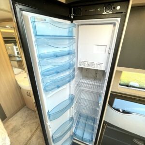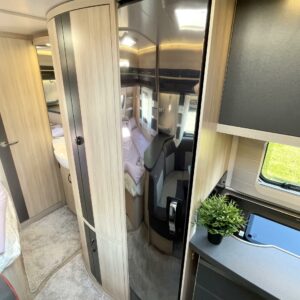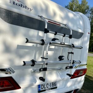 Alde, Front awning, Fridge, Cassette WC, Cassette blinds, Roof hatch, Bunk bed, Passenger area carpets, Stove, Hot water boiler, Sun shade, Fluid circulation heating, Freezer compartment, Double bed, Sink, Bicycle rack, Electric heating cartridge, Support legs