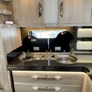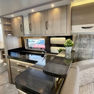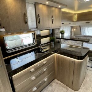 Pitkittäinen parivuode, Sun shade, Lattialämmitys- sähköinen, Alde- nestekiertoinen keskuslämmitys, Fridge, Cassette WC, Cassette blinds, Roof hatch, Passenger area carpets, Stove, Freezer compartment, Sink, Shower, Electric heating cartridge, Support legs, Hot water boiler, Kesärenkaat, sähkön ulosotto, Asuinosan hyttysovi/verho