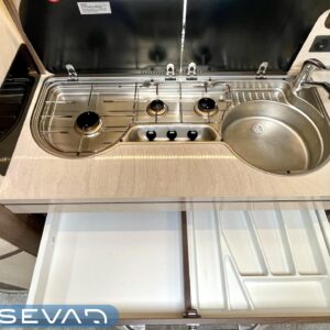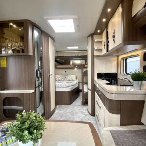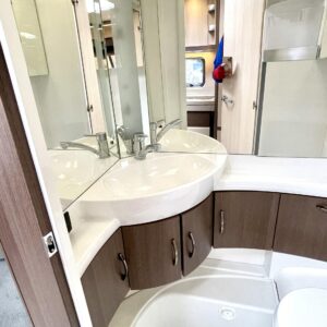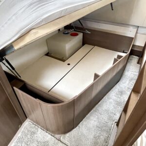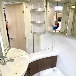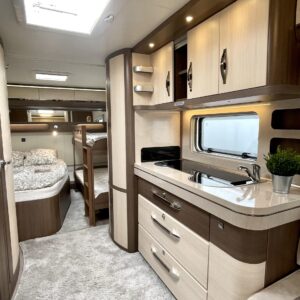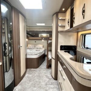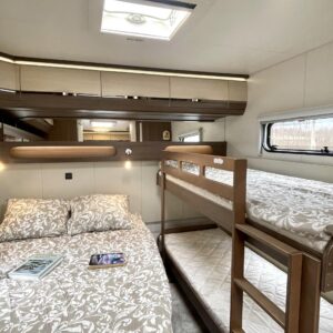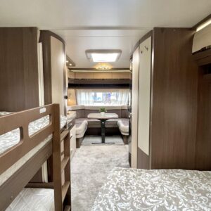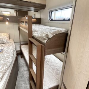 Alde, Electric heating cartridge, Floor heating, Lattialämmitys (sähkö), Fridge, Cassette WC, Cassette blinds, Roof hatch, Bunk bed, Passenger area carpets, Stove, Hot water boiler, Sun shade, Fluid circulation heating, Freezer compartment, Double bed, Sink, Support legs