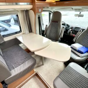 Sun shade, Solar panel, Special wheels, Separate beds, Service history, Cab air conditioning, Ilmastointi: Automaattinen, Fridge, Cassette WC, Cassette blinds, Roof hatch, Keskuslukitus: Kaukosäätöinen, Passenger area carpets, Stove, Navigator, Rear box, Sink, Pysäköintikamera, Bicycle rack, Radio, Shower, Electric windows, Electric steps, TV-antenni tai lautasantenni, Trumatic, Hot water boiler