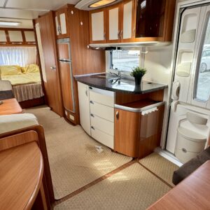 Alde, Fridge, Cassette WC, Cassette blinds, Roof hatch, Passenger area carpets, Stove, Hot water boiler, Fluid circulation heating, Freezer compartment, Double bed, Electric heating cartridge, Support legs, Lattialämmitys (sähkö), Kesärenkaat, kwh-mittari, sähkön ulosotto, Asuinosan hyttysovi/verho