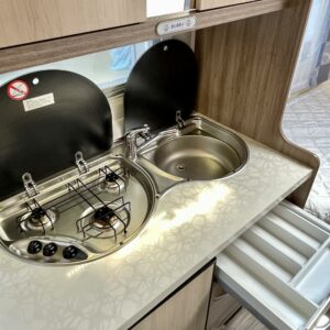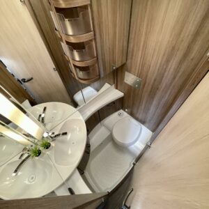 Roof hatch, Separate beds, Special wheels, Fridge, Cassette WC, Cassette blinds, Stove, Hot water boiler, Sun shade, Freezer compartment, Sink, TV-antenni tai lautasantenni, Truma, 1 x kevytmet.vanteet, kwh-mittari, televisio, Floor heating, Electric heating cartridge, Support legs