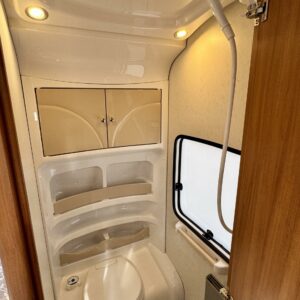 Alde, Solar panel, Fridge, Cassette WC, Roof hatch, Floor heating, Sun shade, Fluid circulation heating, Double bed, Freezer compartment, Sink, Cassette blinds, Bicycle rack, Shower, Electric heating cartridge, Support legs