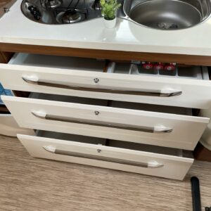 Alde, Separate beds, Fridge, Cassette WC, Central heating, Floor heating, Passenger area carpets, Stove, Hot water boiler, Fluid circulation heating, Freezer compartment, Electric heating cartridge, Support legs, TV antenna/satellite dish, Cassette blinds, Roof hatch, Sink, TV-antenni tai lautasantenni, Lattialämmitys (sähkö), kwh-mittari, mover, jenkkijääkaappi, kaasun ulosotto, sähkön ulosotto, televisioteline, Asuinosan hyttysovi/verho, Kotelomarkiisi