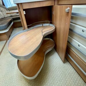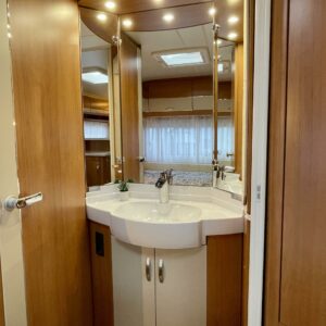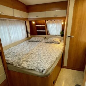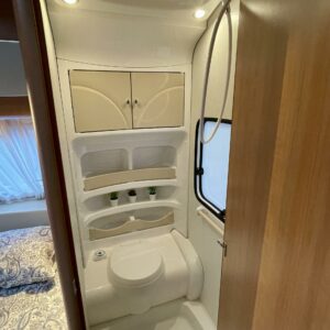 Trumatic- ilmapuhalluslämmitys, Sink, Freezer compartment, Stove, Roof hatch, Cassette blinds, Kasetti- WC, Fridge, Hot water boiler, Double bed, Shower, Support legs, Lattialämmitys (sähkö), Kesärenkaat, sähkön ulosotto, Passenger area carpets