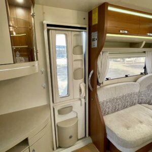 Alde, Fridge, Cassette WC, Cassette blinds, Roof hatch, Floor heating, Passenger area carpets, Stove, Freezer compartment, Double bed, Sink, Support legs, liesituuletin, Hot water boiler, Fluid circulation heating, Electric heating cartridge, Kesärenkaat, 1 x kevytmet.vanteet, kwh-mittari, Saarekevuode, kaasun ulosotto, sähkön ulosotto