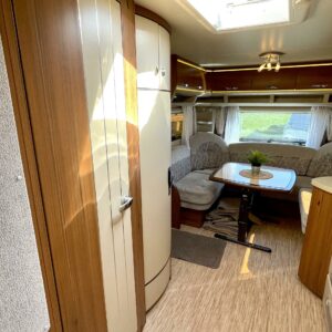 Alde, CD-soitin, Special wheels, Separate beds, Fridge, Cassette WC, Cassette blinds, Roof hatch, Floor heating, Passenger area carpets, Stove, Hot water boiler, Sun shade, Fluid circulation heating, Freezer compartment, Sink, Electric heating cartridge, TV-antenni tai lautasantenni, Support legs, Lattialämmitys (sähkö), kwh-mittari, jenkkijääkaappi, liesituuletin, Asuinosan hyttysovi/verho