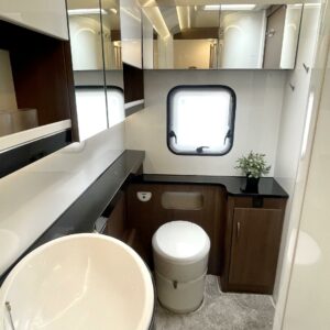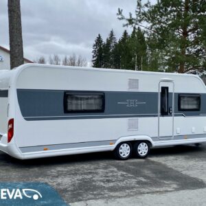 Alde, Fridge, Cassette WC, Cassette blinds, Roof hatch, Passenger area carpets, Stove, Hot water boiler, Microwave oven, Fluid circulation heating, Freezer compartment, Double bed, Sink, Shower, Electric heating cartridge, Support legs, Lattialämmitys (sähkö), kwh-mittari, pullonvaihtaja, kaasun ulosotto, televisioteline