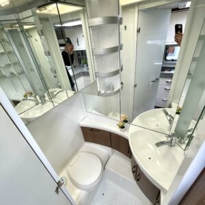 Alde, Separate beds, Ilmastointi: Automaattinen, Fridge, Cassette WC, Cassette blinds, Roof hatch, Floor heating, Passenger area carpets, Stove, Hot water boiler, Fluid circulation heating, Freezer compartment, Sink, Electric heating cartridge, TV-antenni tai lautasantenni, Support legs, Lattialämmitys (sähkö), kwh-mittari, jenkkijääkaappi, liesituuletin, sähkön ulosotto, Asuinosan hyttysovi/verho