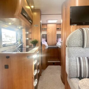 ABS brakes, Airbag, Trip computer, Separate beds, Cab air conditioning, Fridge, Cassette WC, Cassette blinds, Roof hatch, Central heating, Passenger area carpets, Stove, Hot water boiler, Sun shade, Power steering, Freezer compartment, Sink, Bicycle rack, Radio, Electric windows, Electric heating cartridge, Power side mirrors, Electric steps, Trumatic, Turbo, Vakionopeudensäädin