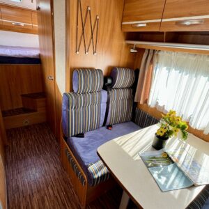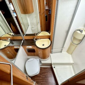ABS brakes, Cassette WC, Stove, Hot water boiler, Sun shade, Double bed, Fuel-operated additional heater, Electric windows, Electric heating cartridge, Power side mirrors, Electric steps, Trumatic, Airbag, Trip computer, CD-soitin, Fridge, Ilmastointi: Manuaalinen, Cab air conditioning, Cassette blinds, Roof hatch, Central heating, Ignition interlock, Sink, Freezer compartment, Power steering, Bicycle rack, Radio, Shower, Turbo, Vakionopeudensäädin, TV-antenni tai lautasantenni