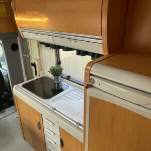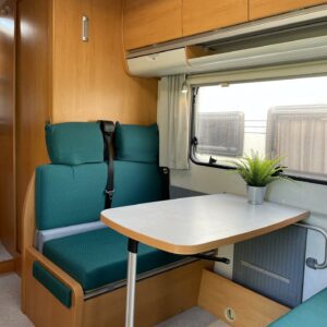 Air conditioning man., Fridge, Cassette WC, Cassette blinds, Roof hatch, Ignition interlock, Stove, Hot water boiler, Sun shade, Power steering, Freezer compartment, Double bed, Sink, Bicycle rack, Shower, Electric windows, Power side mirrors, Electric steps, Trumatic, Turbo, TV antenna/satellite dish, CD-Radio, ABS brakes, Insulated grey water tank