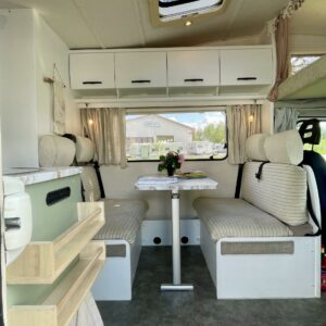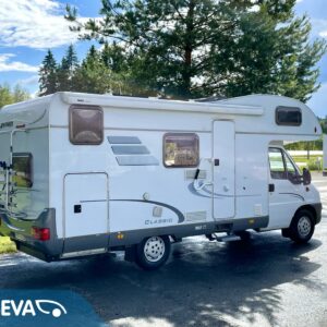 Fridge, Roof hatch, Central heating, Stove, Engine heater, Hot water boiler, Sun shade, Power steering, Freezer compartment, Sink, Bicycle rack, Shower, Electric heating cartridge, Trumatic, Ignition interlock, Double bed, Radio, Turbo, Two tyre sets