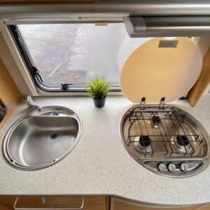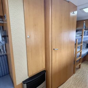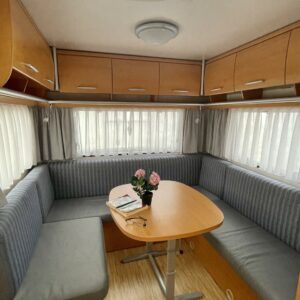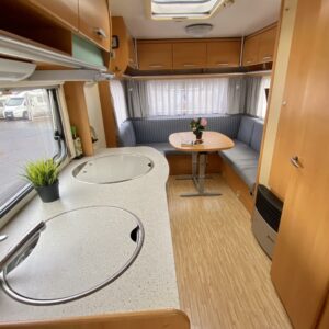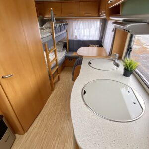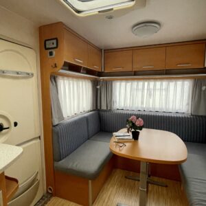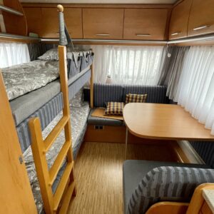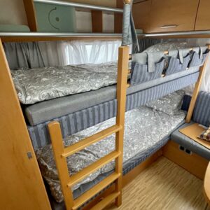 Fridge, Cassette WC, Cassette blinds, Roof hatch, Bunk bed, Central heating, Stove, Hot water boiler, Freezer compartment, Sink, Bicycle rack, Trumatic, Support legs, TV antenna/satellite dish