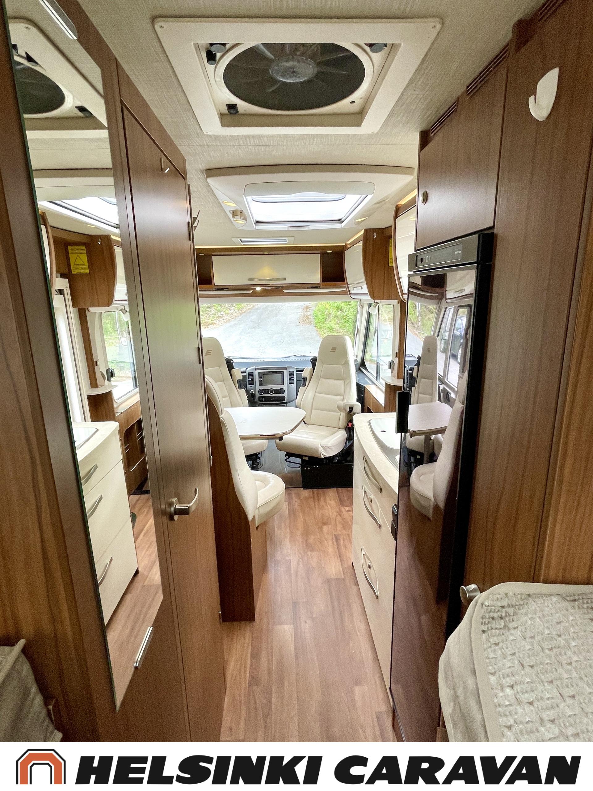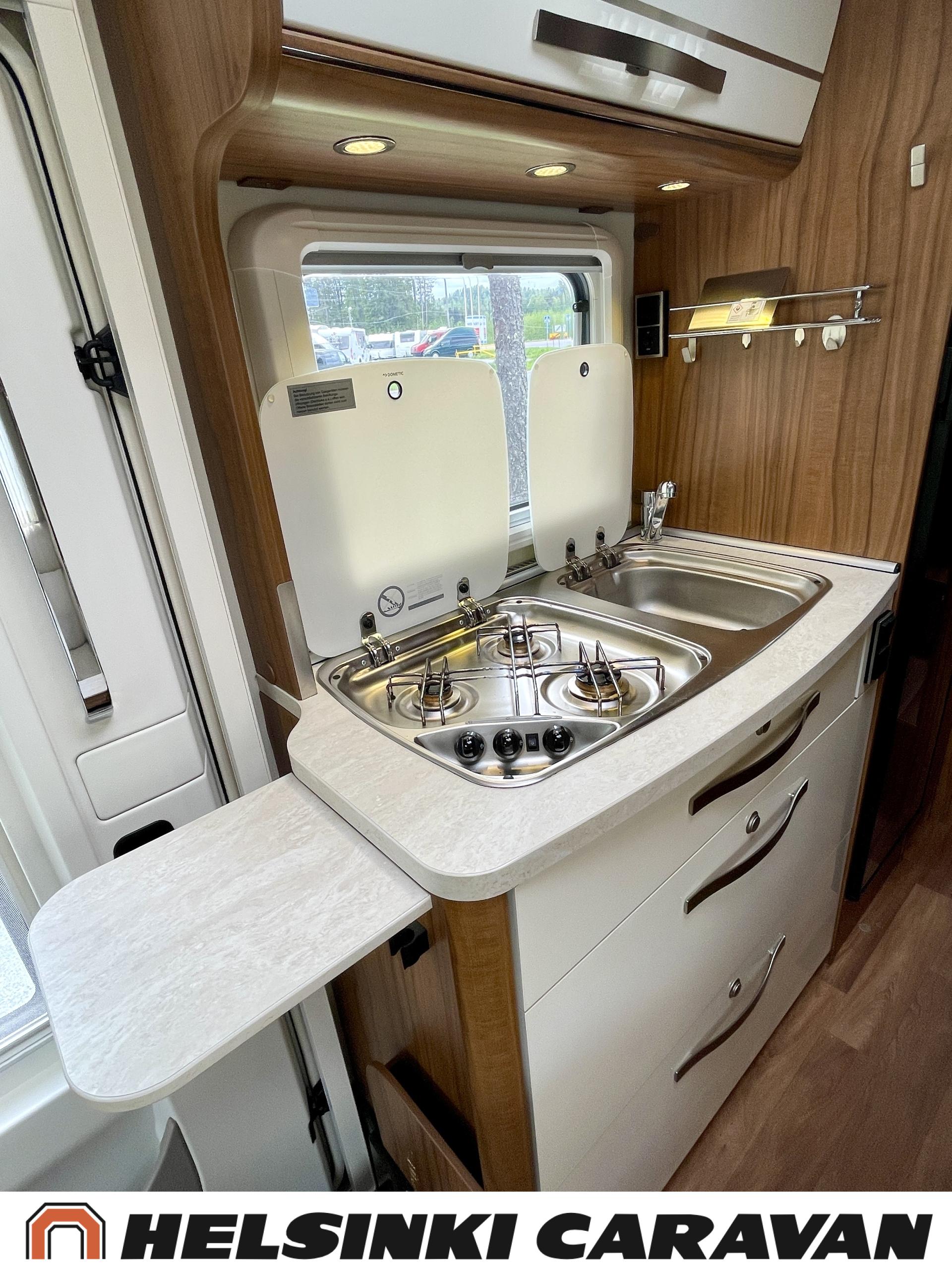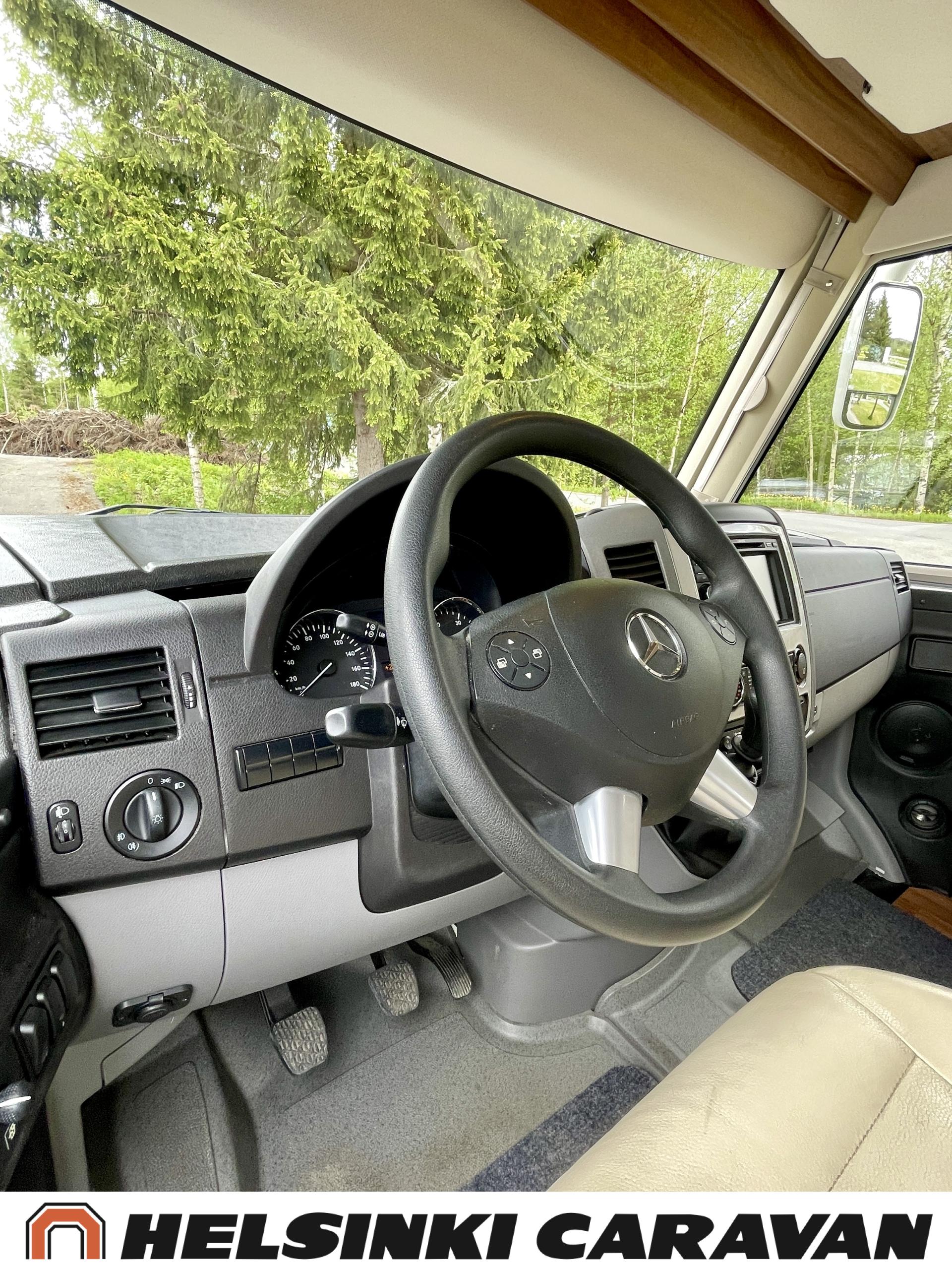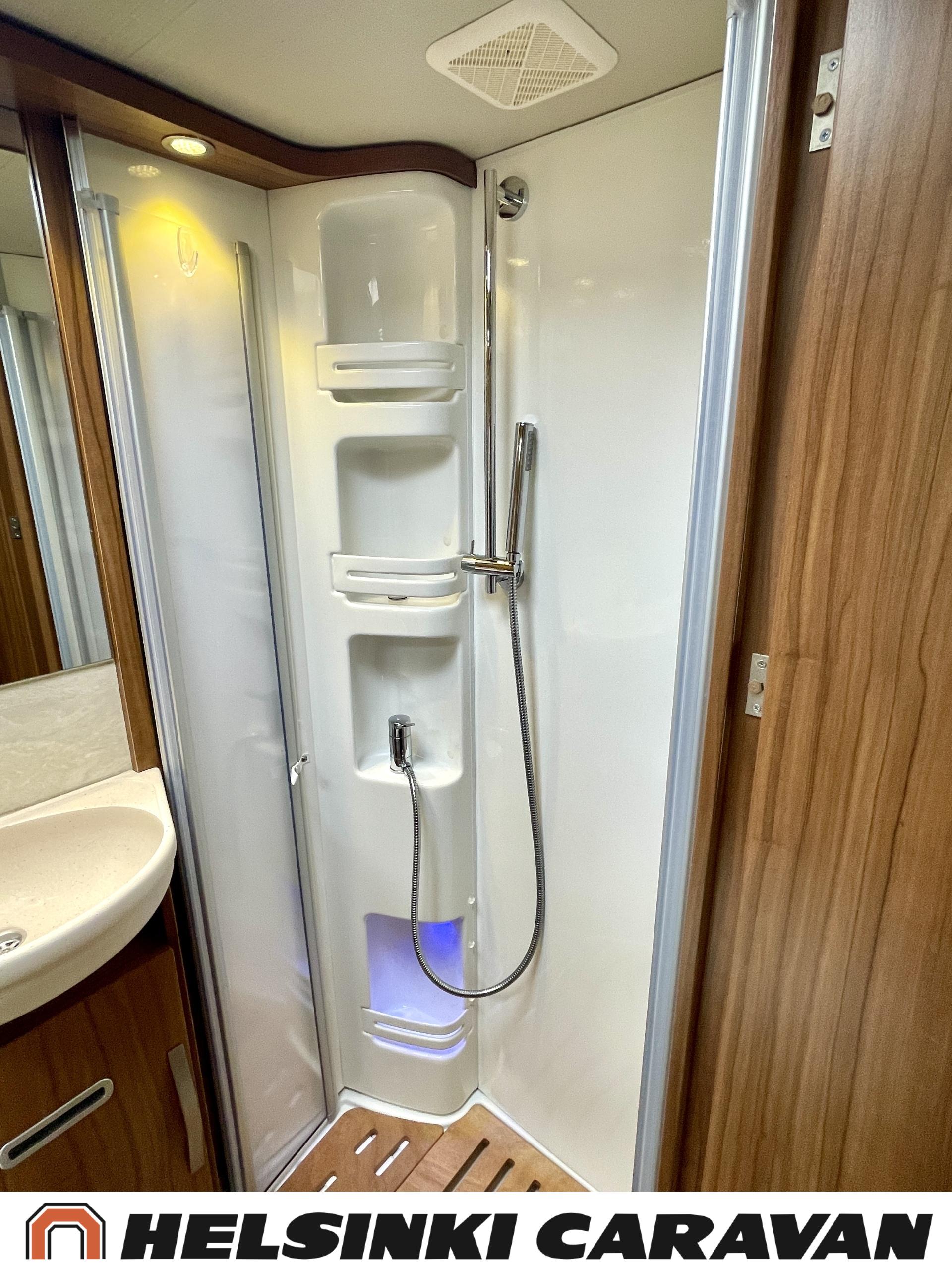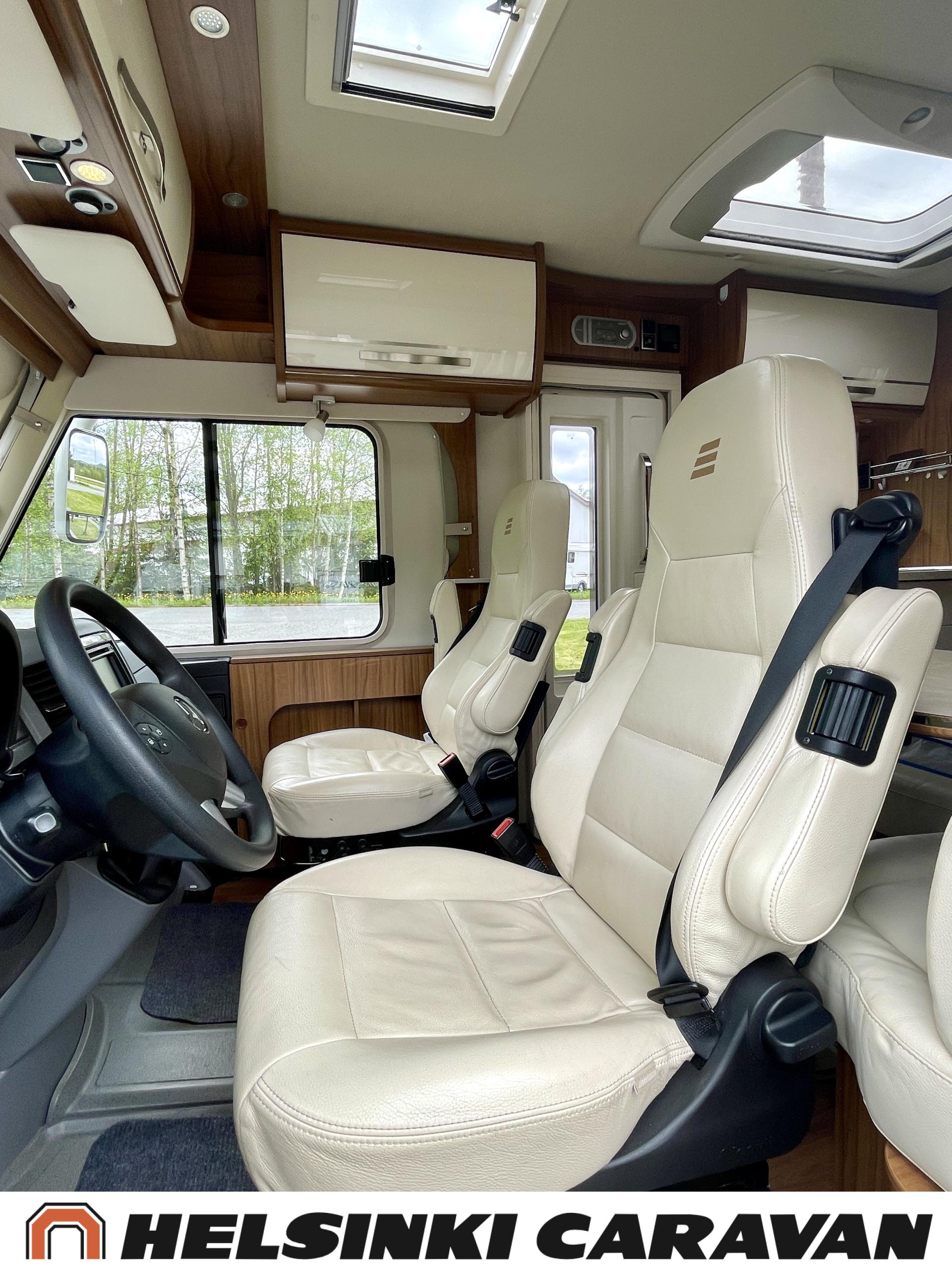 ABS brakes, Airbag, Bluetooth, Special wheels, Cab air conditioning, Fridge, Cassette WC, Cassette blinds, Roof hatch, Stove, Sink, Bicycle rack, Shower, Electric windows, Trumatic, Vakionopeudensäädin, Electric heating cartridge, Sun shade, kaasun ulosotto, Towing hook
