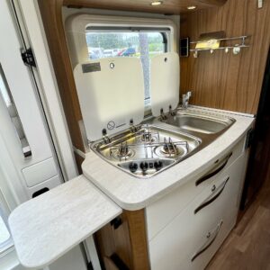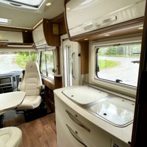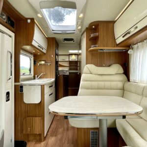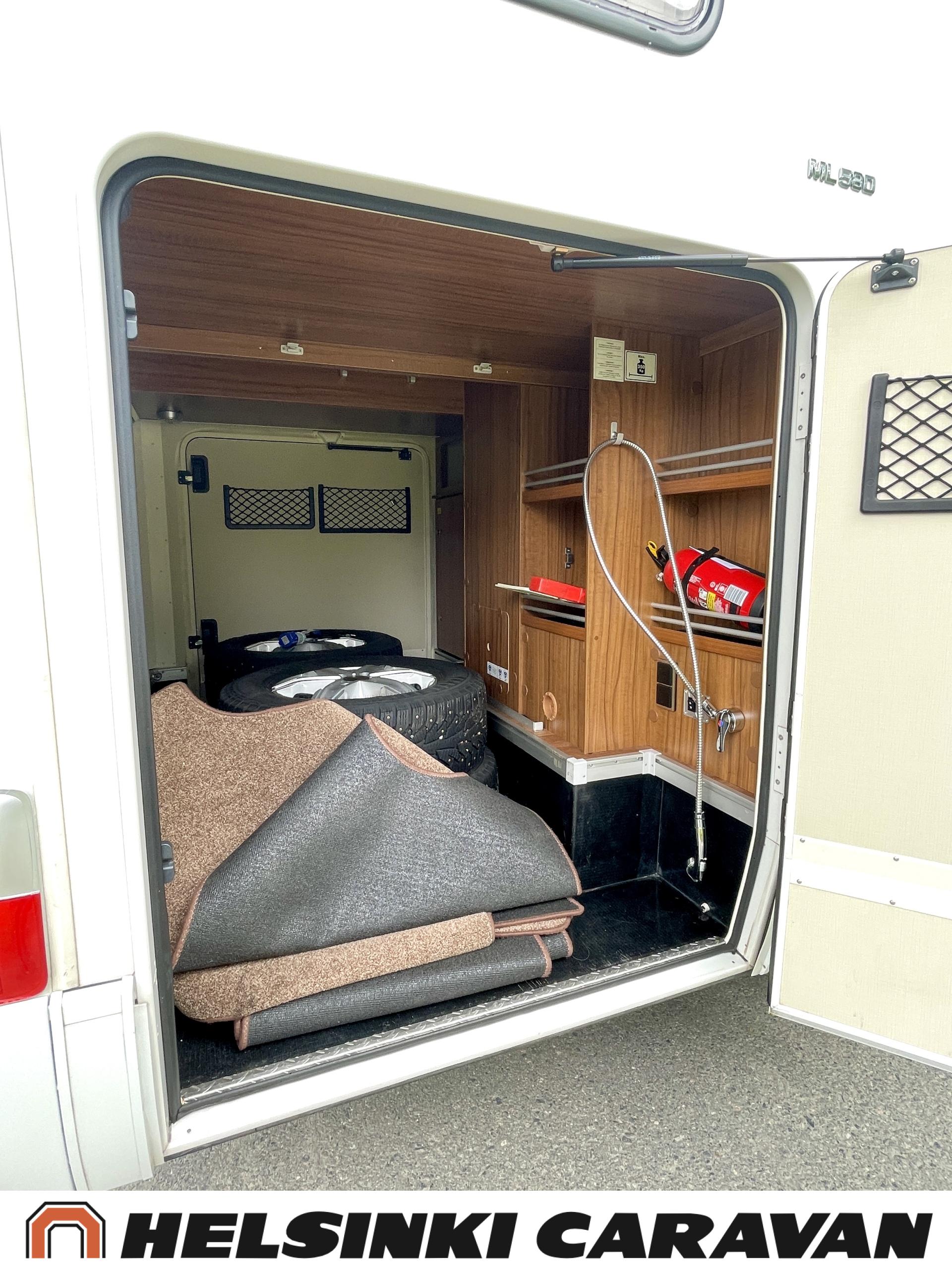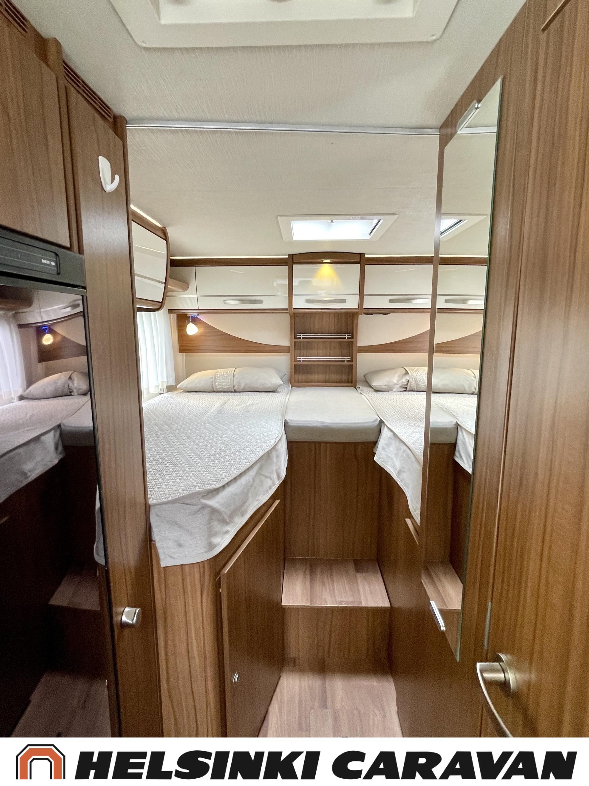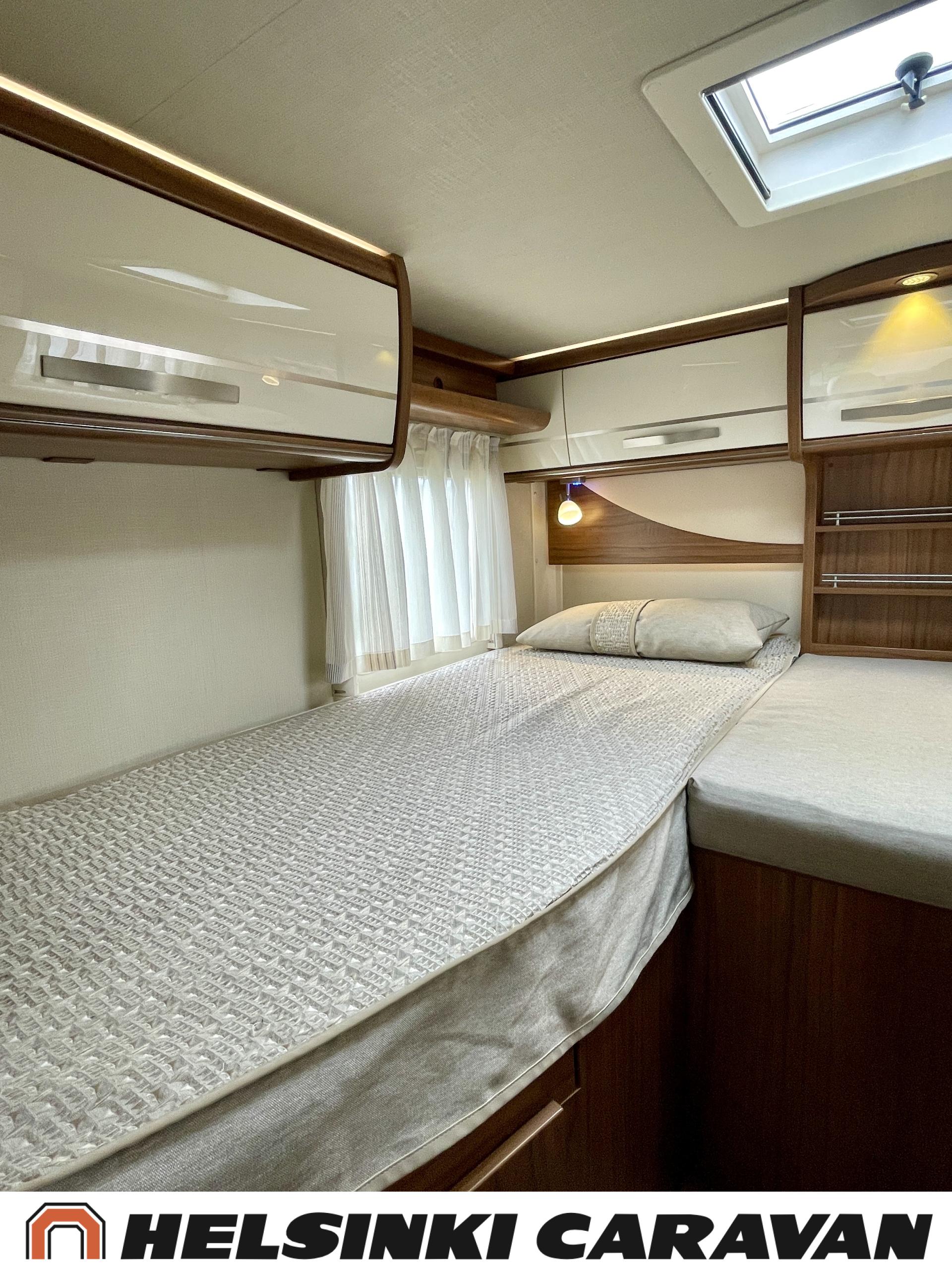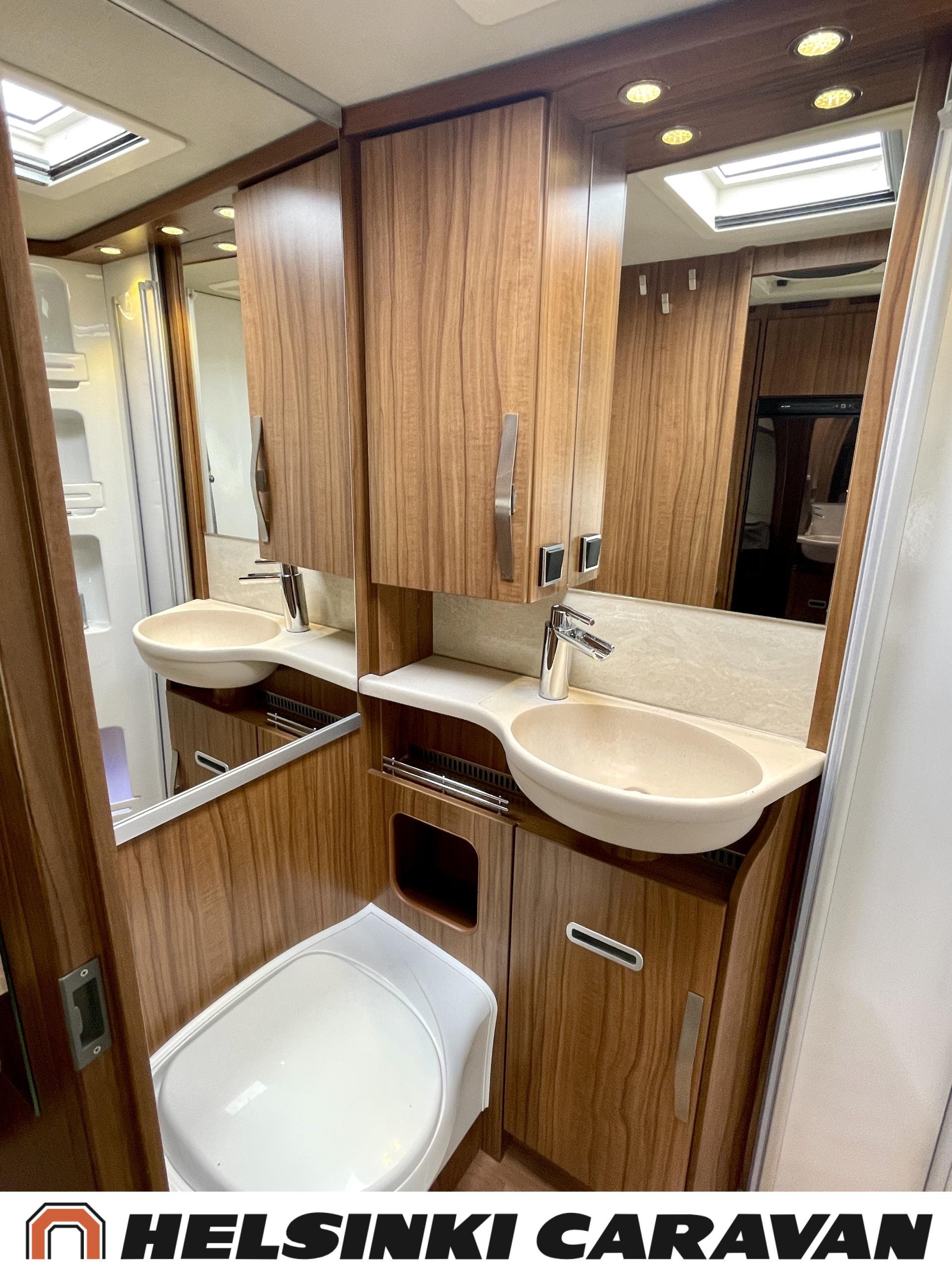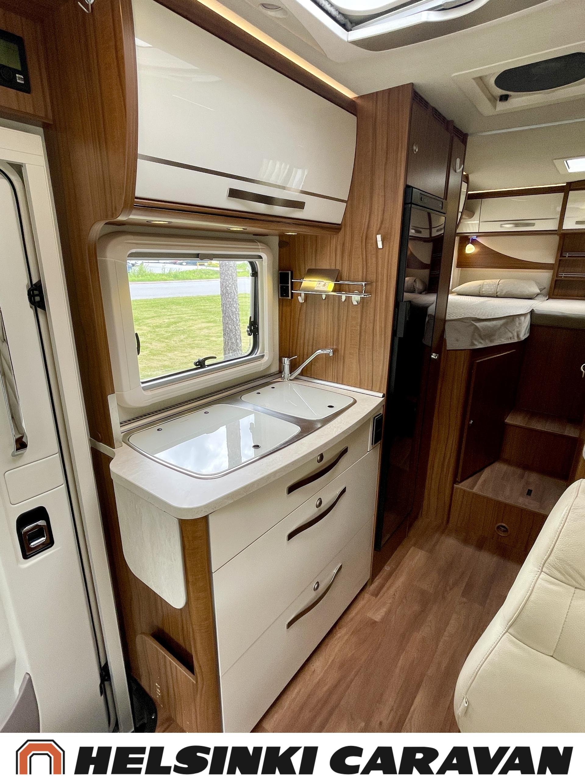 ABS brakes, Airbag, Bluetooth, Special wheels, Cab air conditioning, Fridge, Cassette WC, Cassette blinds, Roof hatch, Stove, Sink, Bicycle rack, Shower, Electric windows, Trumatic, Vakionopeudensäädin, Electric heating cartridge, Sun shade, kaasun ulosotto, Towing hook