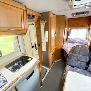 Fridge, Ilmastointi: Automaattinen, Cassette WC, Cassette blinds, Radio, Bicycle rack, Trumatic, Power steering, Sun shade, CD-soitin, Roof hatch, Stove, Traction control, Hot water boiler, Passenger area carpets, Ignition interlock, Central heating, Freezer compartment, Double bed, Sink, Turbo, TV-antenni tai lautasantenni, Pysäköintikamera, Electric steps, Fuel-operated additional heater, Two tyre sets, Vakionopeudensäädin, Shower