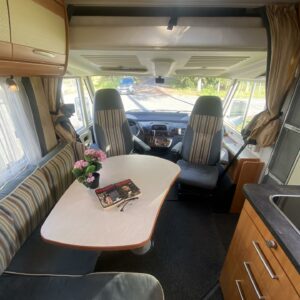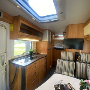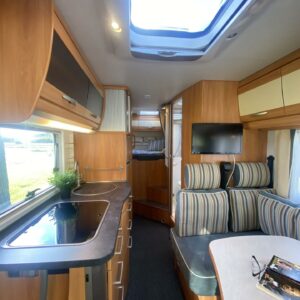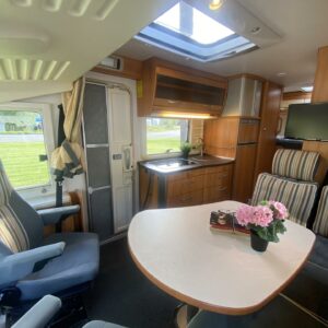 Solar panel, Special wheels, Cab air conditioning, Fridge, Cassette WC, Cassette blinds, Roof hatch, Central heating, Floor heating, Stove, Hot water boiler, Sun shade, Power steering, Freezer compartment, Sink, Fuel-operated additional heater, Pysäköintikamera, Bicycle rack, Radio, Shower, Electric steps, Trumatic, Vakionopeudensäädin, kaasun ulosotto, televisio