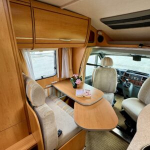 Cassette WC, Cassette blinds, Passenger area carpets, Stove, Engine heater, Hot water boiler, Sun shade, Bicycle rack, Interior plug, Electric windows, Electric heating cartridge, Power side mirrors, Electric steps, Vakionopeudensäädin, ranskalainen vuode, ohjaamon kasettiverhot, pullonvaihtaja, Cab air conditioning, Special wheels, Trumatic, Pysäköintikamera, Fridge, Roof hatch, Double bed, Sink, Shower, Freezer compartment, Fuel-operated additional heater, 1 x kevytmet.vanteet, Kesärenkaat