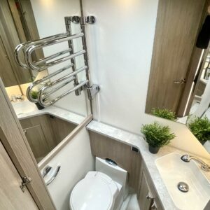 Alde, CD-soitin, Separate beds, Ilmastointi: Automaattinen, Fridge, Cassette WC, Roof hatch, Floor heating, Hot water boiler, Sun shade, Microwave oven, Fluid circulation heating, Freezer compartment, Radio, Electric heating cartridge, USB, TV-antenni tai lautasantenni, Special wheels, Cassette blinds, Stove, Sink, Support legs, Lattialämmitys (nestekierto), Ilmastointi (asuintila), kwh-mittari, Insulated grey water tank, harmaavesisäiliön lämmitys, jenkkijääkaappi, liesituuletin, kaasun ulosotto, sähkön ulosotto, Asuinosan hyttysovi/verho, Solar panel