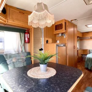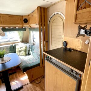 Alde, Fridge, Two tyre sets, Cassette blinds, Roof hatch, Floor heating, Stove, Hot water boiler, Fluid circulation heating, Freezer compartment, Double bed, Sink, Electric heating cartridge, TV-antenni tai lautasantenni, Support legs
