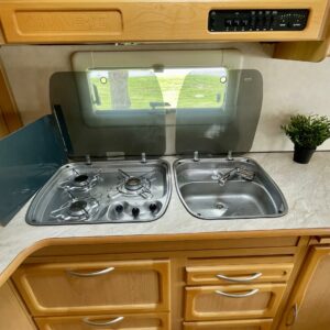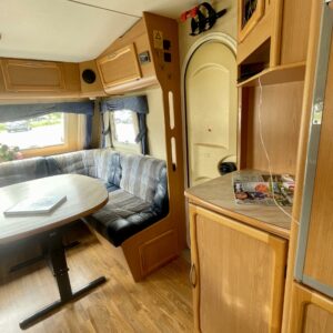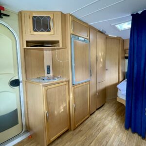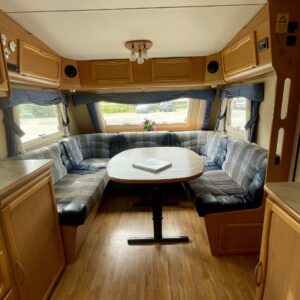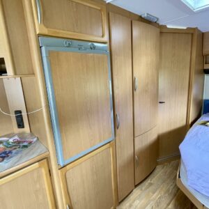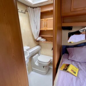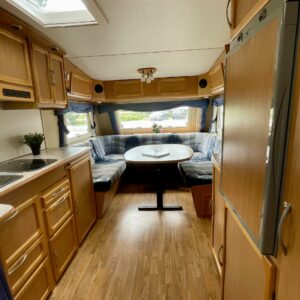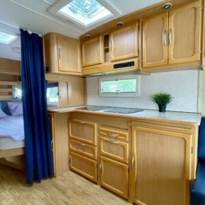 Alde, Fridge, Cassette WC, Cassette blinds, Roof hatch, Fluid circulation heating, Freezer compartment, Double bed, Sink, Radio, Electric heating cartridge, Support legs, TV-antenni tai lautasantenni