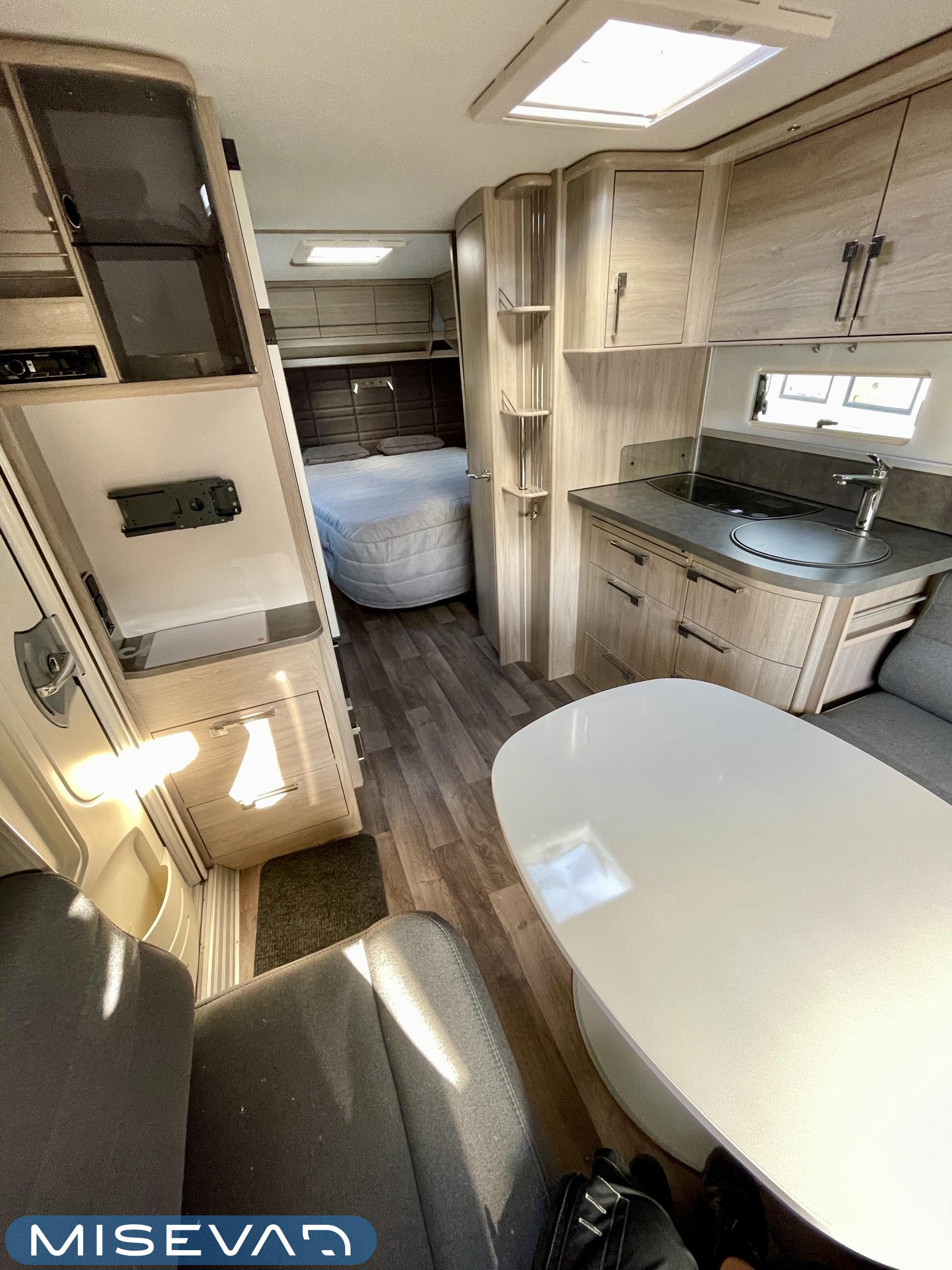 Alde, Electric heating cartridge, Special wheels, Insulated grey water tank, Fridge, Cassette WC, Cassette blinds, Roof hatch, Floor heating, Stove, Hot water boiler, Microwave oven, Fluid circulation heating, Freezer compartment, Double bed, Sink, Radio, TV-antenni tai lautasantenni, Support legs, USB, Lattialämmitys (nestekierto), kwh-mittari, harmaavesisäiliön lämmitys, jenkkijääkaappi, liesituuletin, kaasun ulosotto, sähkön ulosotto, televisioteline, Asuinosan hyttysovi/verho, Mukavuuspaketti