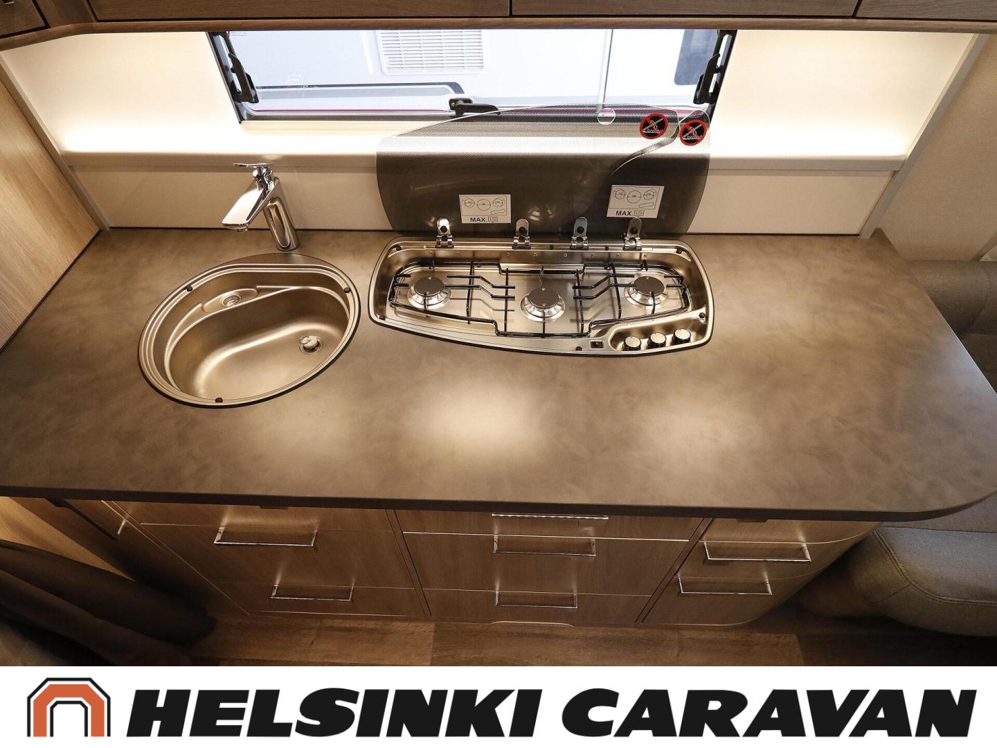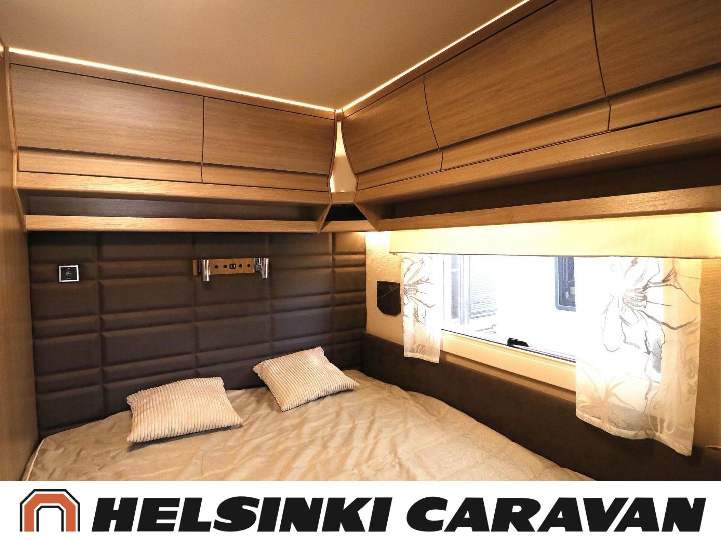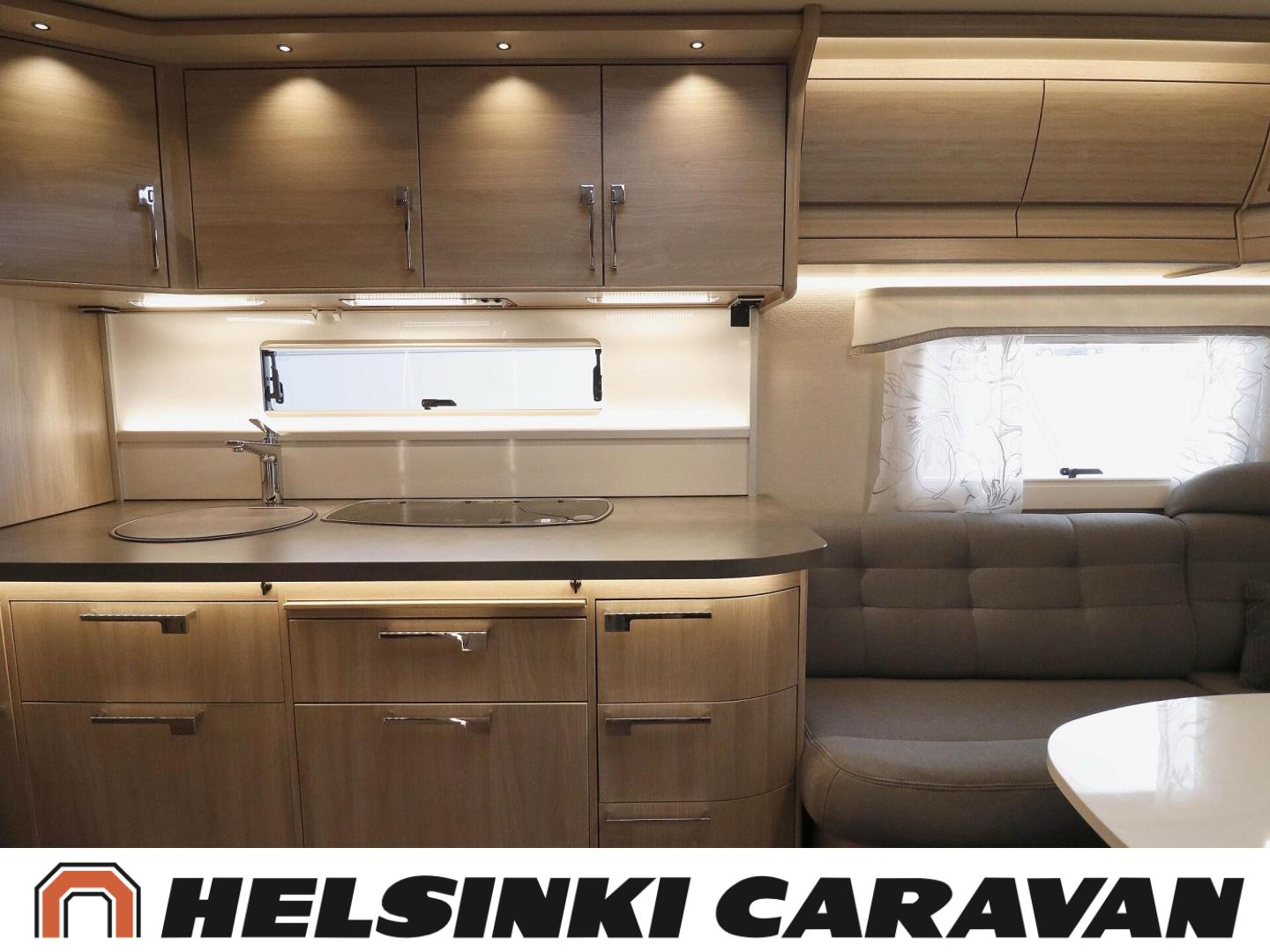 Alde, Solar panel, CD-soitin, Special wheels, Insulated grey water tank, Ilmastointi: Automaattinen, Fridge, Cassette WC, Cassette blinds, Roof hatch, Floor heating, Hot water boiler, Microwave oven, Fluid circulation heating, Freezer compartment, Double bed, Radio, Shower, Electric heating cartridge, kaasun ulosotto, kwh-mittari, Stereo system, Telttapalvelurasia, Lattialämmitys (nestekierto), Asuinosan hyttysovi/verho, jenkkijääkaappi, liesituuletin, sähkön ulosotto