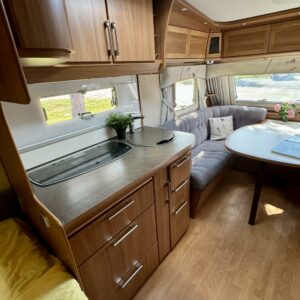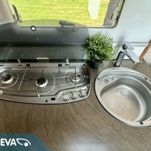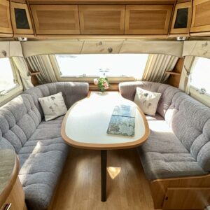 Alde, Cassette blinds, Cassette WC, Fridge, Roof hatch, Floor heating, Stove, Hot water boiler, Sun shade, Double bed, Sink, Freezer compartment, Fluid circulation heating, Shower, Electric heating cartridge, TV-antenni tai lautasantenni, Support legs, Bicycle rack