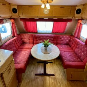 Alde, Fridge, Cassette WC, Cassette blinds, Roof hatch, Floor heating, Stove, Hot water boiler, Fluid circulation heating, Freezer compartment, Double bed, Electric heating cartridge, Support legs, TV-antenni tai lautasantenni, Bicycle rack