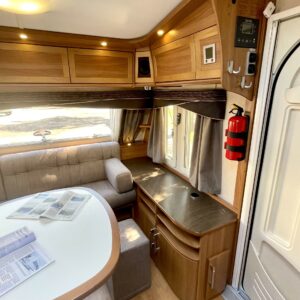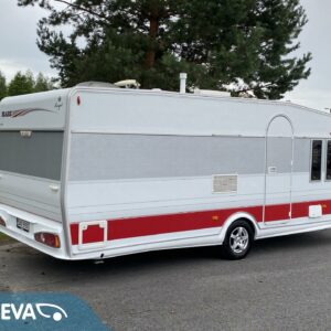 Alde, Special wheels, Fridge, Gas oven, Cassette WC, Cassette blinds, Roof hatch, Central heating, Stove, Hot water boiler, Fluid circulation heating, Freezer compartment, Double bed, Sink, Stereo system, Shower, Electric heating cartridge, Support legs, TV antenna/satellite dish, Lattialämmitys (nestekierto), 1 x kevytmet.vanteet, kwh-mittari, kaasun ulosotto, sähkön ulosotto