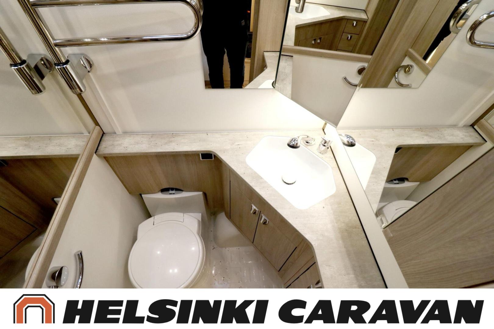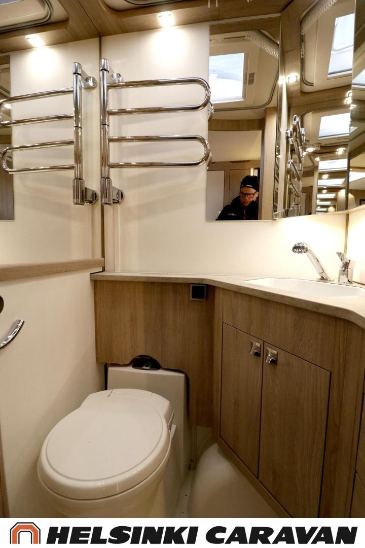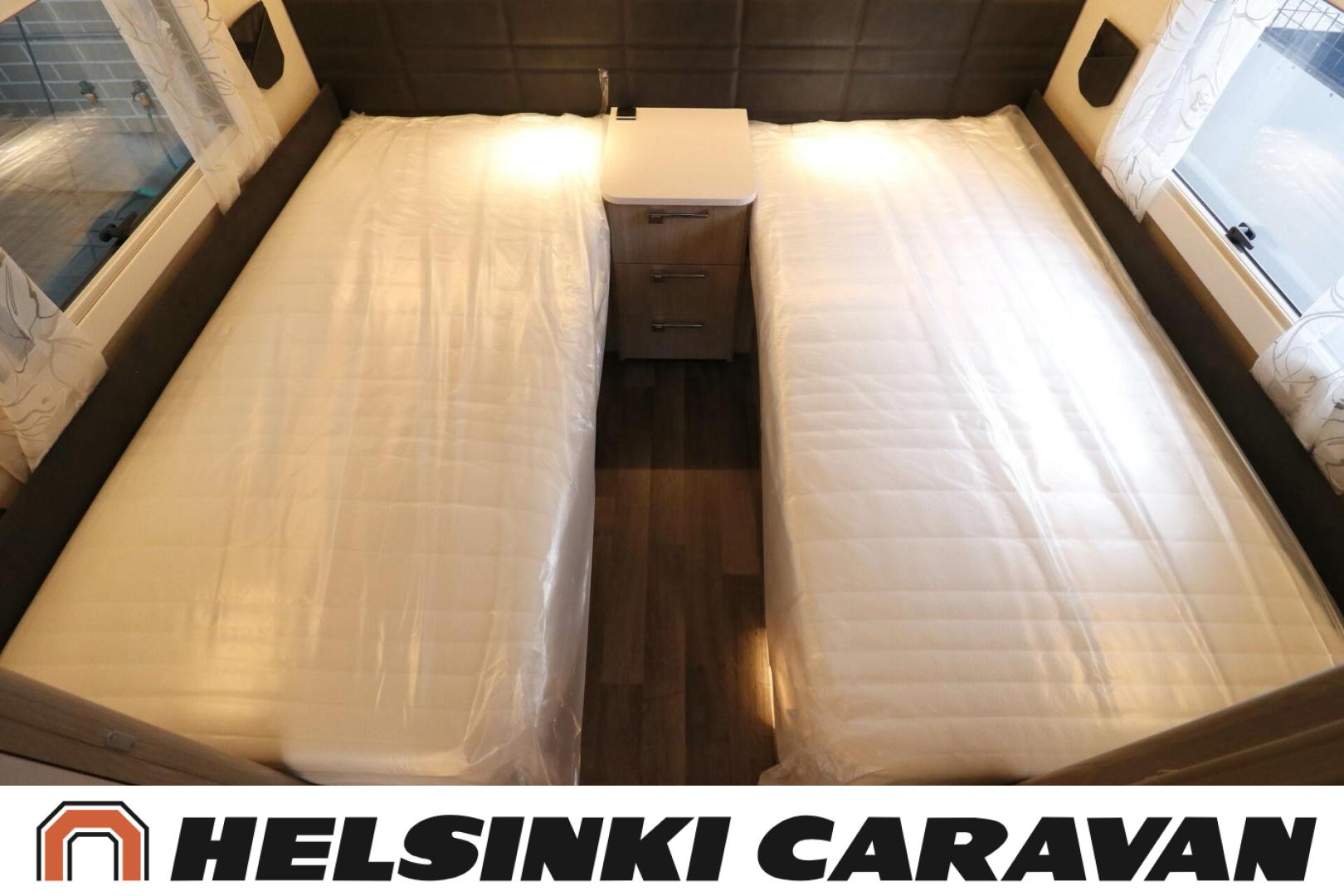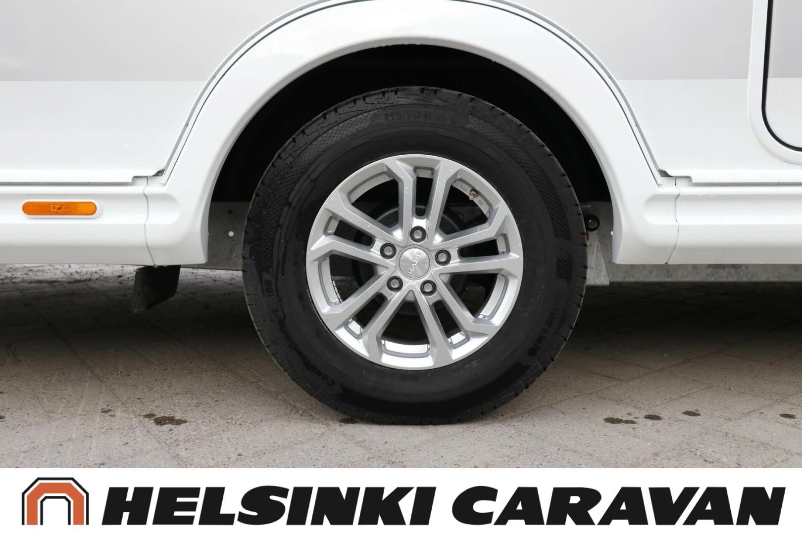 Alde, Bluetooth, Special wheels, Separate beds, Insulated grey water tank, Fridge, Gas oven, Cassette WC, Roof hatch, Floor heating, Stove, Passenger area carpets, Hot water boiler, Microwave oven, Freezer compartment, Shower, Electric heating cartridge, Lattialämmitys (nestekierto)