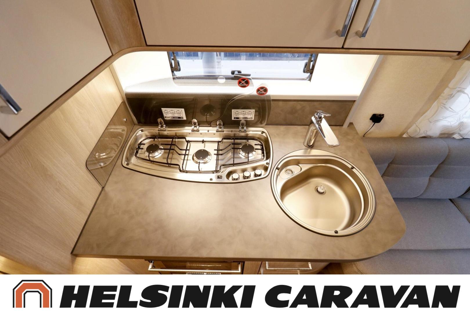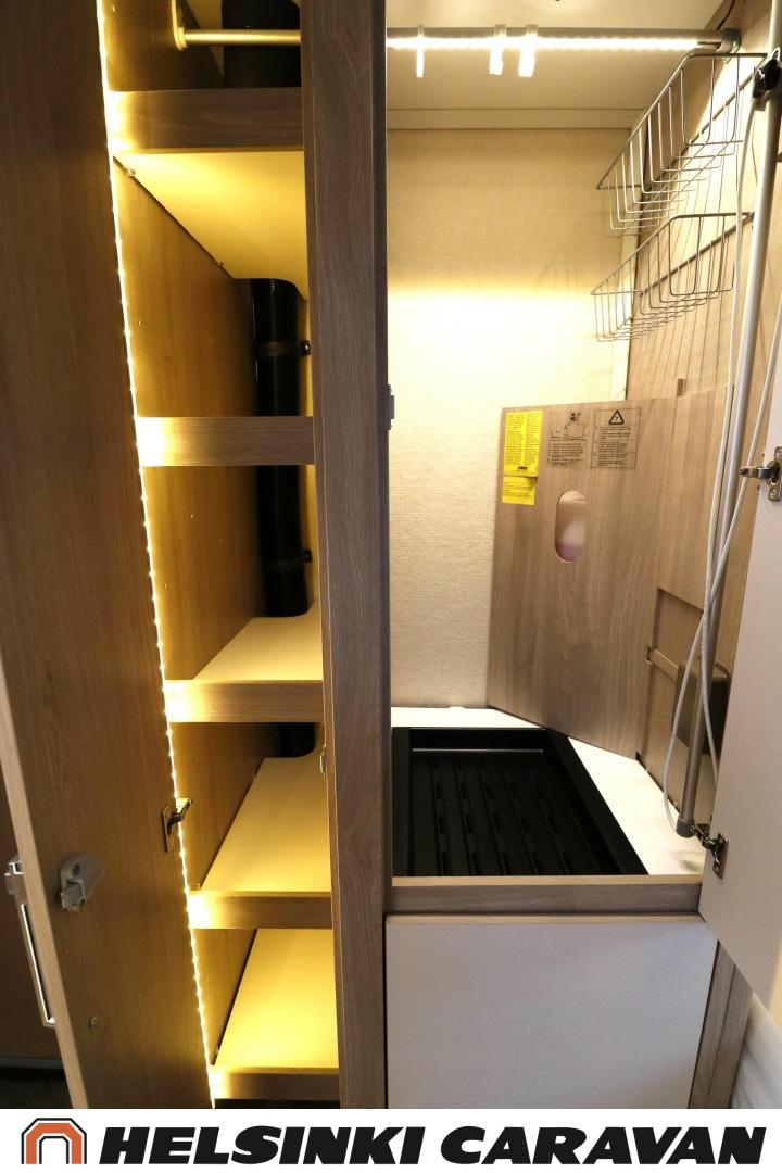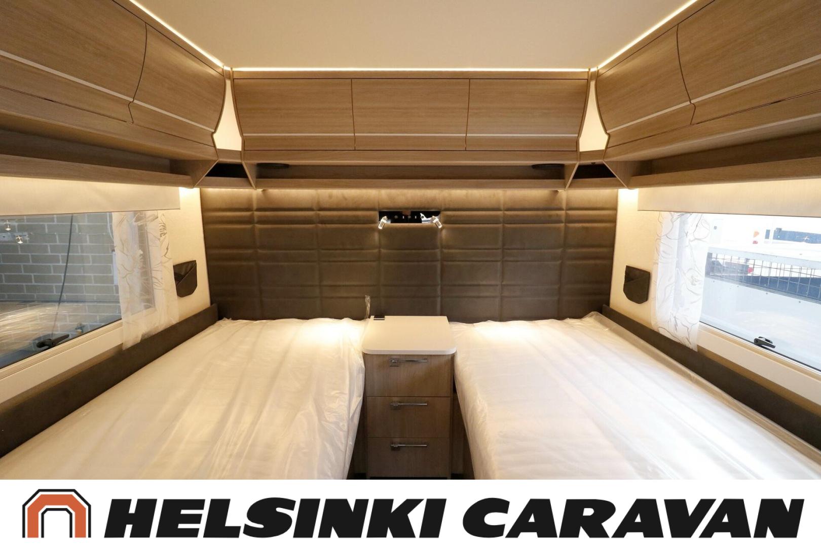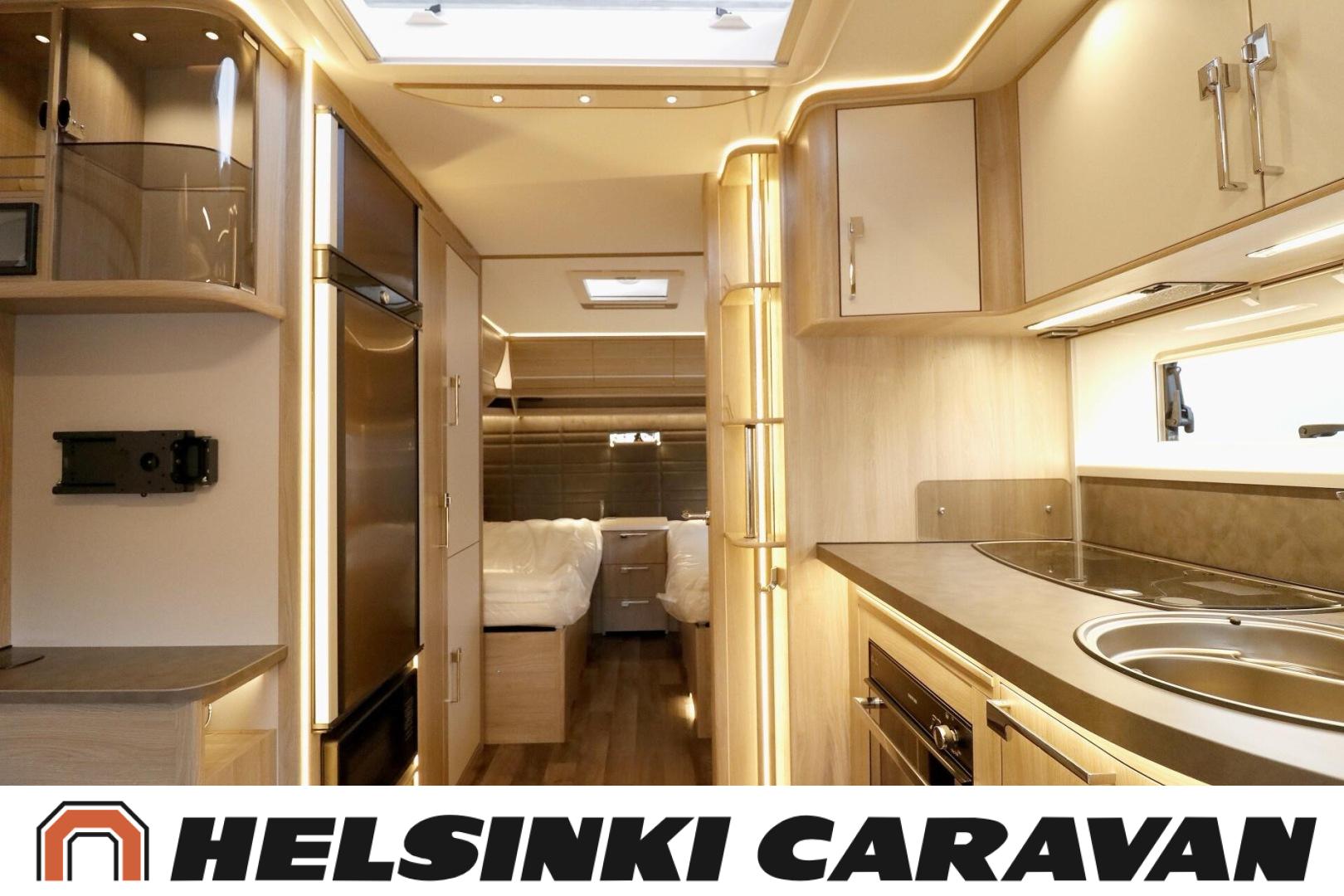 Alde, Bluetooth, Special wheels, Separate beds, Insulated grey water tank, Fridge, Gas oven, Cassette WC, Roof hatch, Floor heating, Stove, Passenger area carpets, Hot water boiler, Microwave oven, Freezer compartment, Shower, Electric heating cartridge, Lattialämmitys (nestekierto)