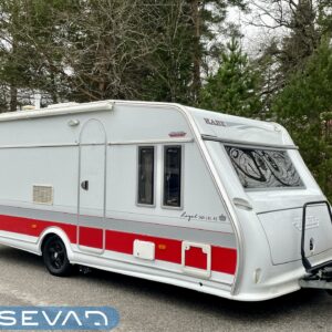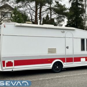 Alde, Special wheels, Insulated grey water tank, Fridge, Gas oven, Two tyre sets, Cassette WC, Cassette blinds, Roof hatch, Stove, Hot water boiler, Freezer compartment, Fluid circulation heating, Double bed, Sink, Radio, Shower, Electric heating cartridge, TV-antenni tai lautasantenni, Support legs, Lattialämmitys (nestekierto), Polkupyöräteline, kwh-mittari, kaasun ulosotto, sähkön ulosotto, liesituuletin, suihkun ulosotto, mover, DVD-soitin, City-vesiliitäntä, Subwoofer-kaiutin, pussi-markiisi