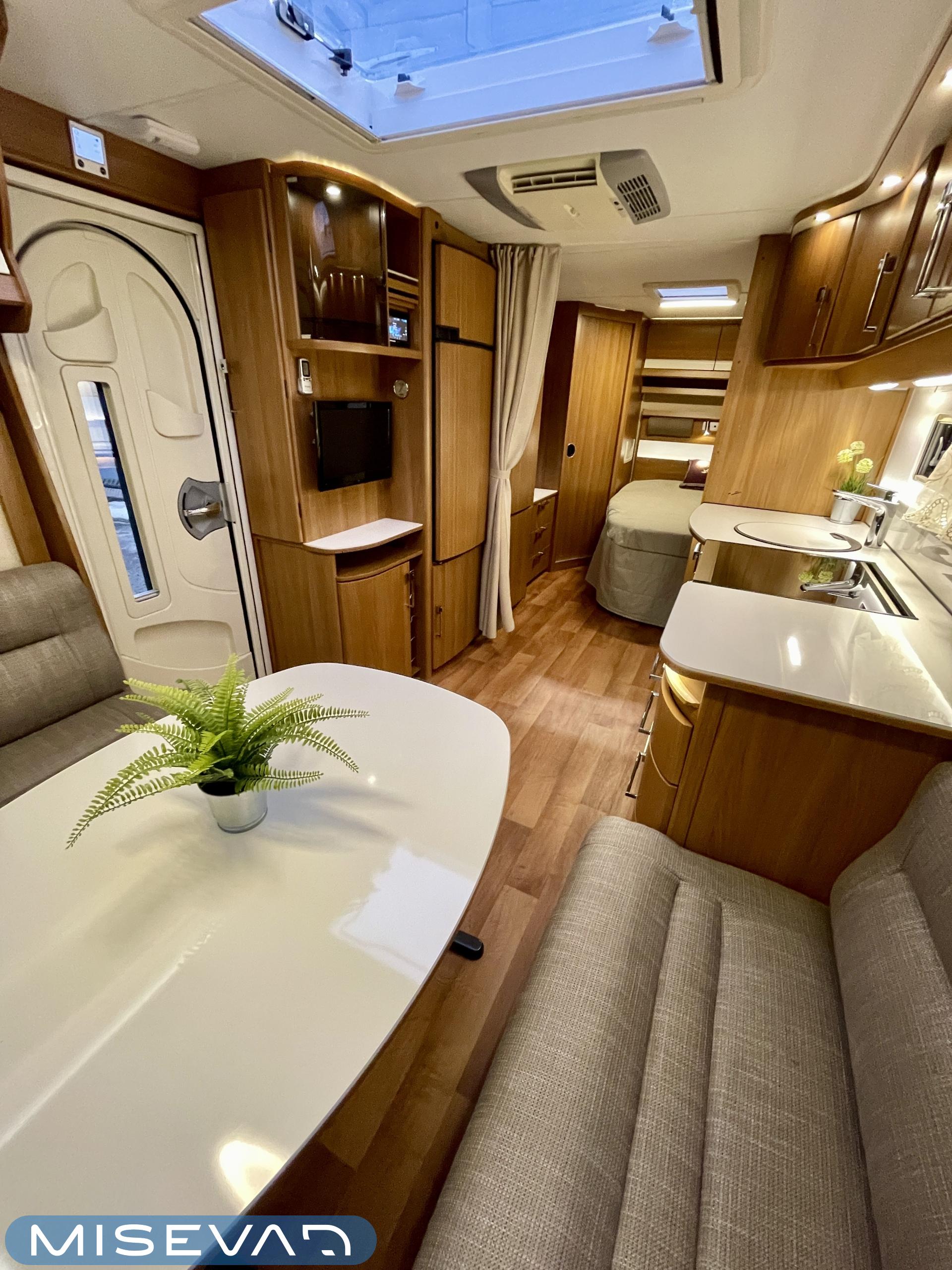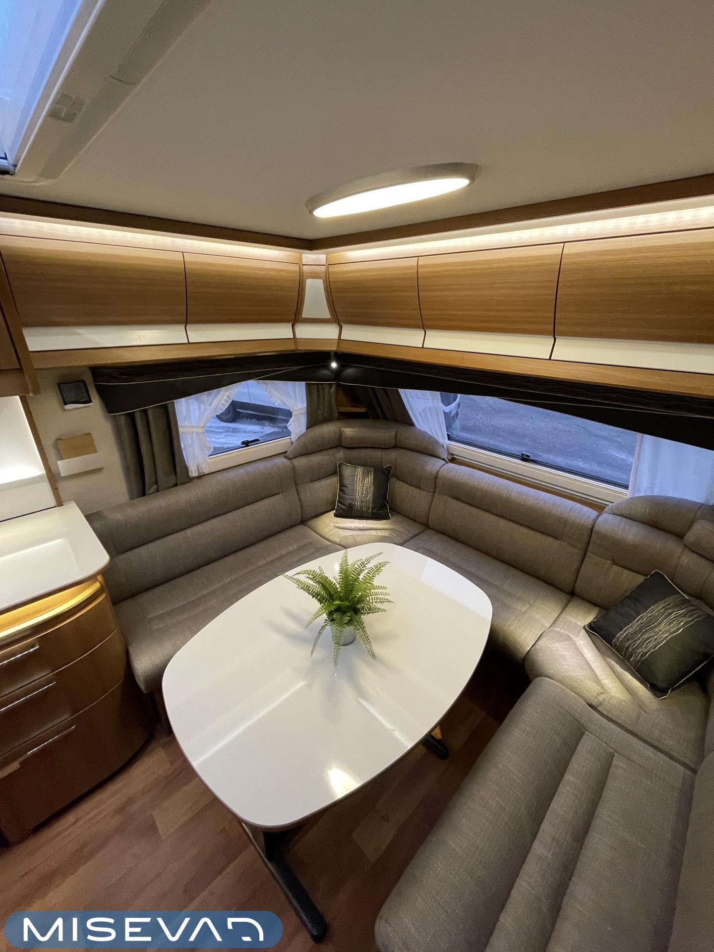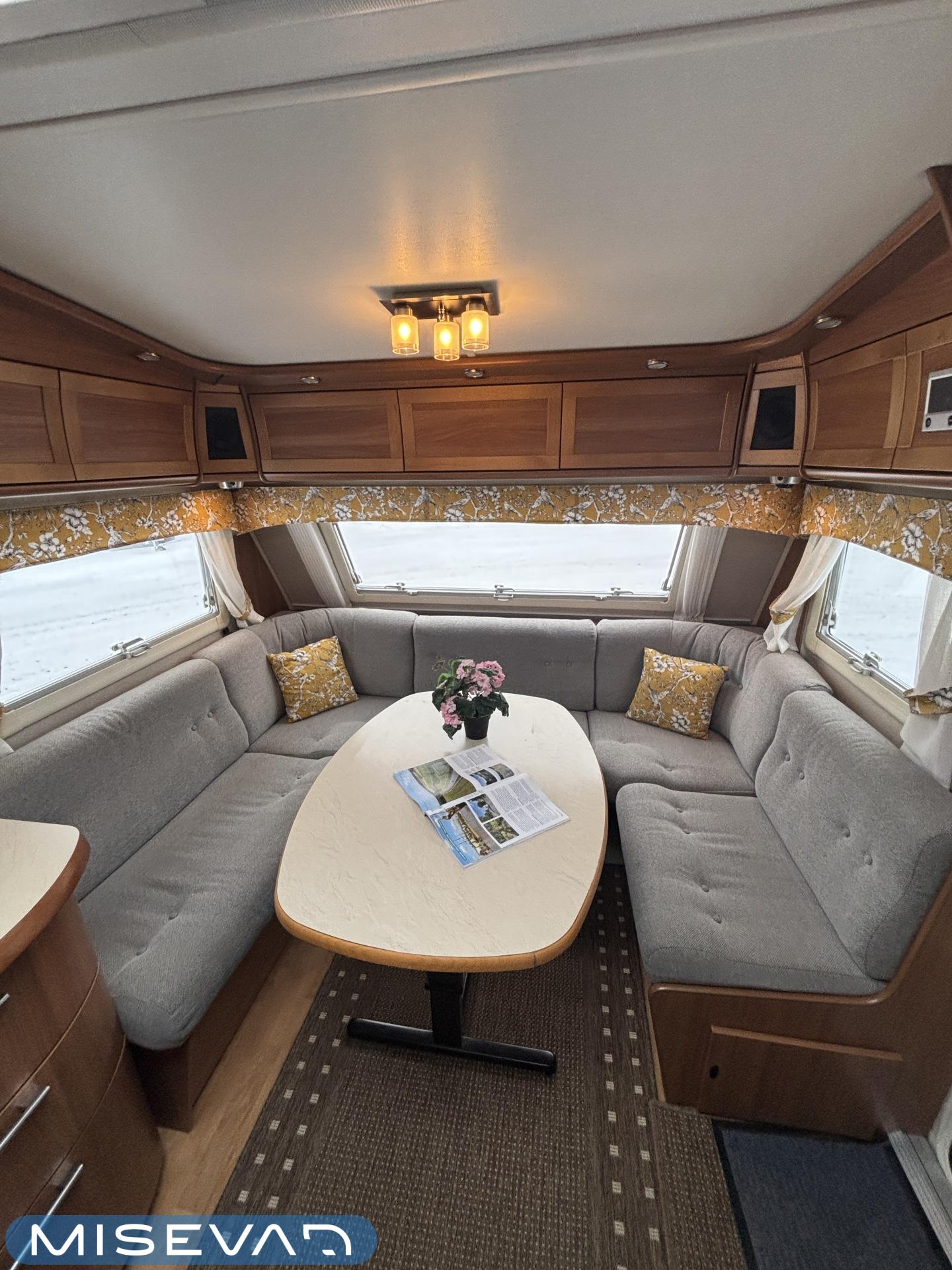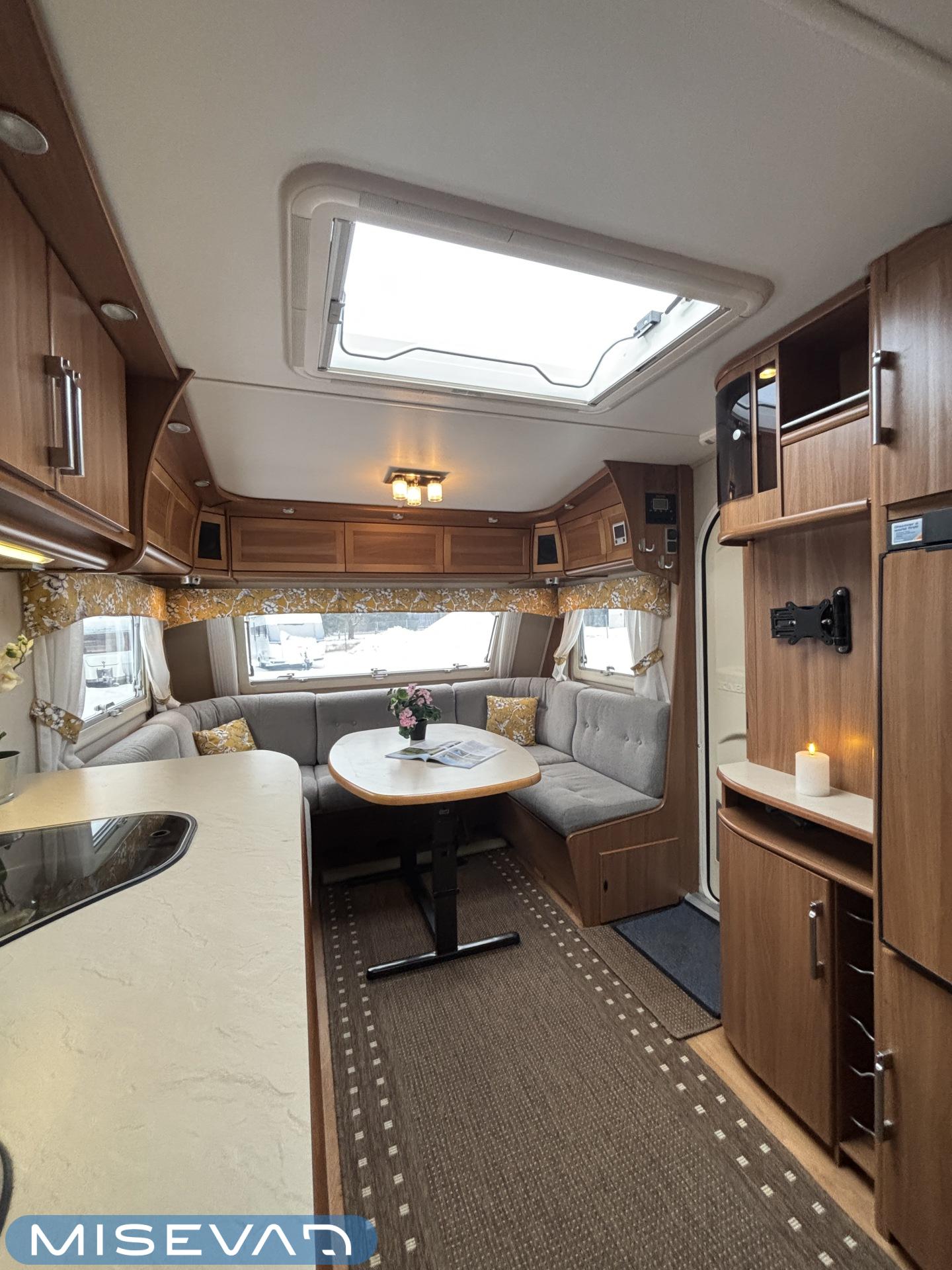 Alde, Special wheels, Air conditioning aut., Fridge, Gas oven, Cassette WC, Cassette blinds, Roof hatch, Stove, Hot water boiler, Fluid circulation heating, Freezer compartment, Double bed, Sink, Stereo system, Shower, Electric heating cartridge, Support legs, TV antenna/satellite dish, Lattialämmitys (nestekierto), kwh-mittari, jenkkijääkaappi, liesituuletin, kaasun ulosotto, sähkön ulosotto, televisio, Asuinosan hyttysovi/verho, ATC (AL-KO vaunun vakautusjärjestelmä), harmaavesisäiliön lämmitys, Keskusimuri, Sähköinen pyyhekuivain, Microwave oven, Radio, USB, Ilmastointi: Manuaalinen, Ilmastointi (asuintila)