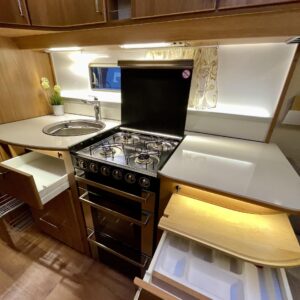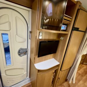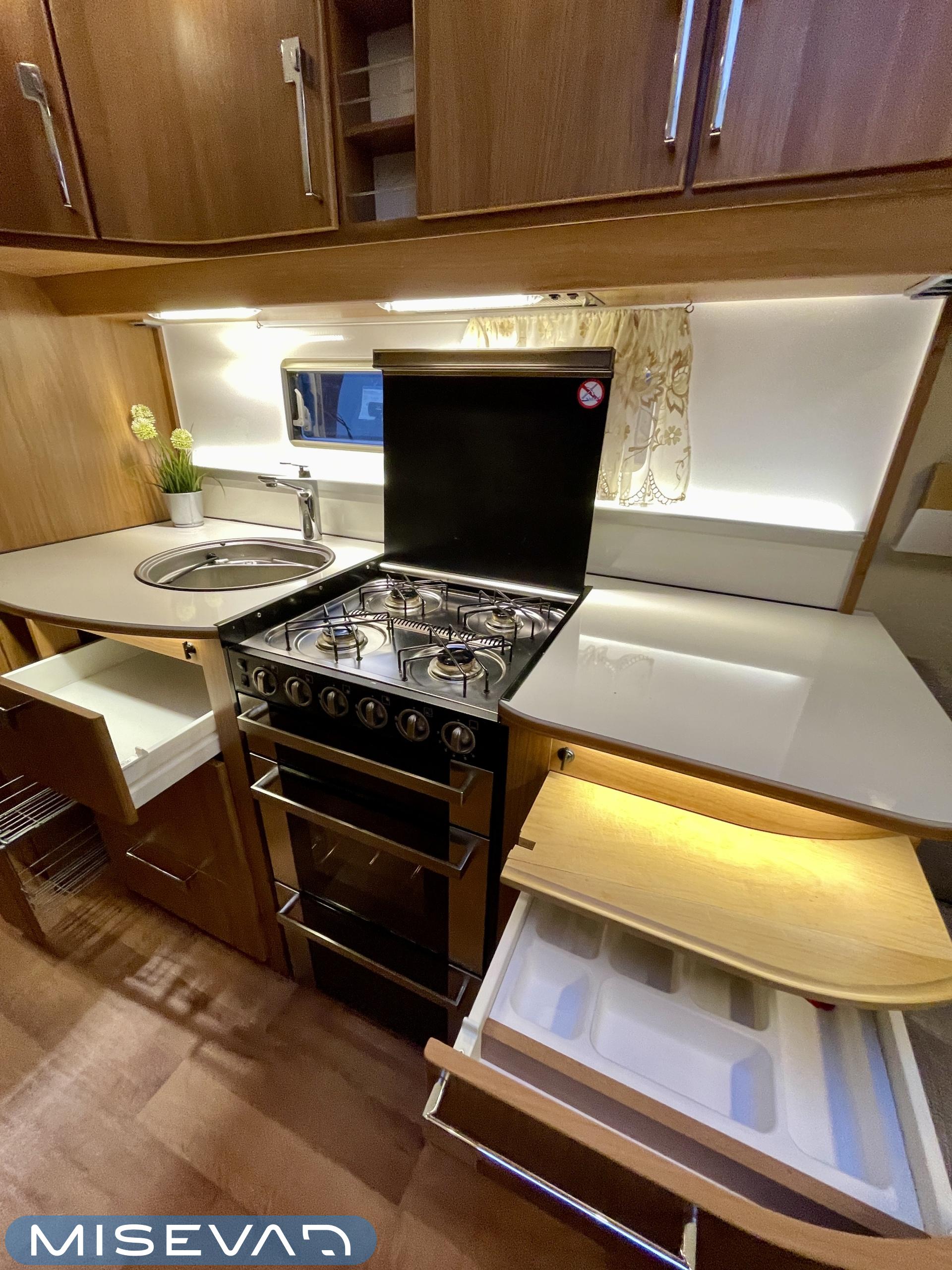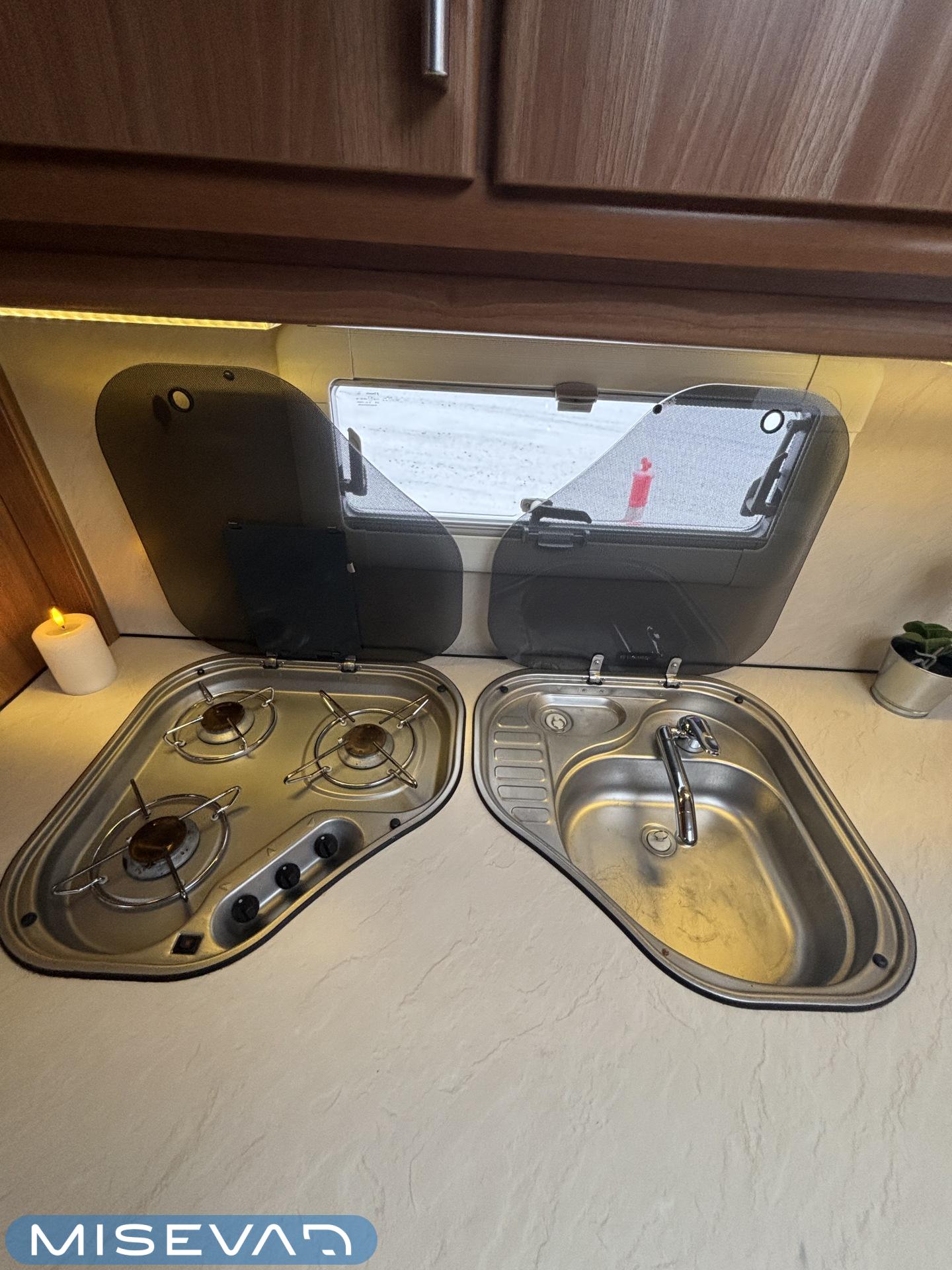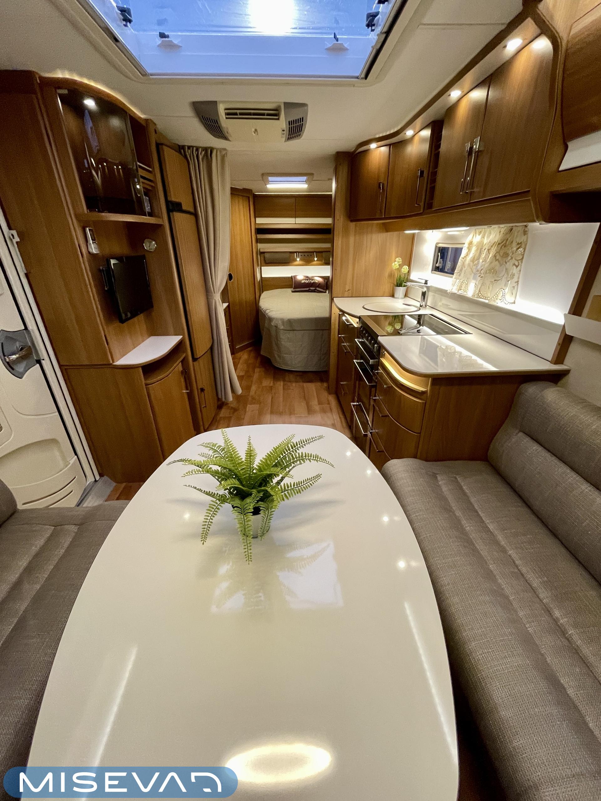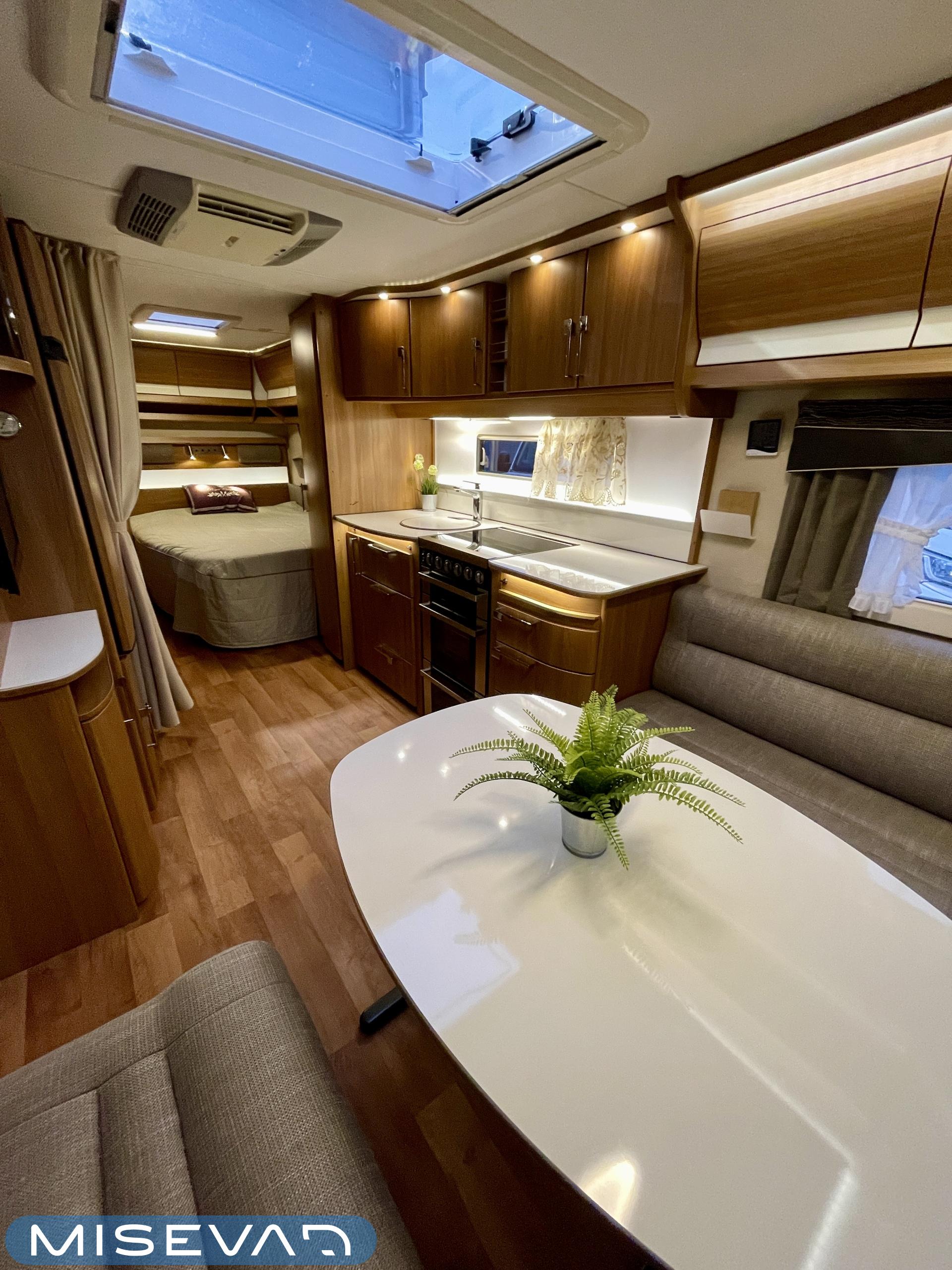 Alde, Special wheels, Air conditioning aut., Fridge, Gas oven, Cassette WC, Cassette blinds, Roof hatch, Stove, Hot water boiler, Fluid circulation heating, Freezer compartment, Double bed, Sink, Stereo system, Shower, Electric heating cartridge, Support legs, TV antenna/satellite dish, Lattialämmitys (nestekierto), kwh-mittari, jenkkijääkaappi, liesituuletin, kaasun ulosotto, sähkön ulosotto, televisio, Asuinosan hyttysovi/verho, ATC (AL-KO vaunun vakautusjärjestelmä), harmaavesisäiliön lämmitys, Keskusimuri, Sähköinen pyyhekuivain, Microwave oven, Radio, USB, Ilmastointi: Manuaalinen, Ilmastointi (asuintila)