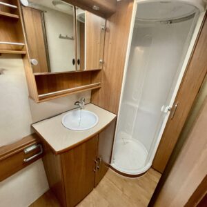 Alde, CD-soitin, Special wheels, Insulated grey water tank, Fridge, Cassette WC, Cassette blinds, Roof hatch, Floor heating, Stove, Hot water boiler, Microwave oven, Fluid circulation heating, Freezer compartment, Double bed, Sink, Electric heating cartridge, Shower, TV-antenni tai lautasantenni, Support legs, Lattialämmitys (nestekierto), kwh-mittari, harmaavesisäiliön lämmitys, jenkkijääkaappi, liesituuletin, kaasun ulosotto, sähkön ulosotto, televisio, Bicycle rack, Asuinosan hyttysovi/verho