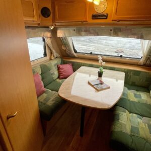 Support legs, Electric heating cartridge, Shower, Sink, Freezer compartment, Hot water boiler, Stove, Lattialämmitys- nestekiertoinen, Roof hatch, Cassette blinds, Kasetti- WC, Insulated grey water tank, Separate beds, Alde- nestekiertoinen keskuslämmitys, Sähkön ulosotto----------------------------------